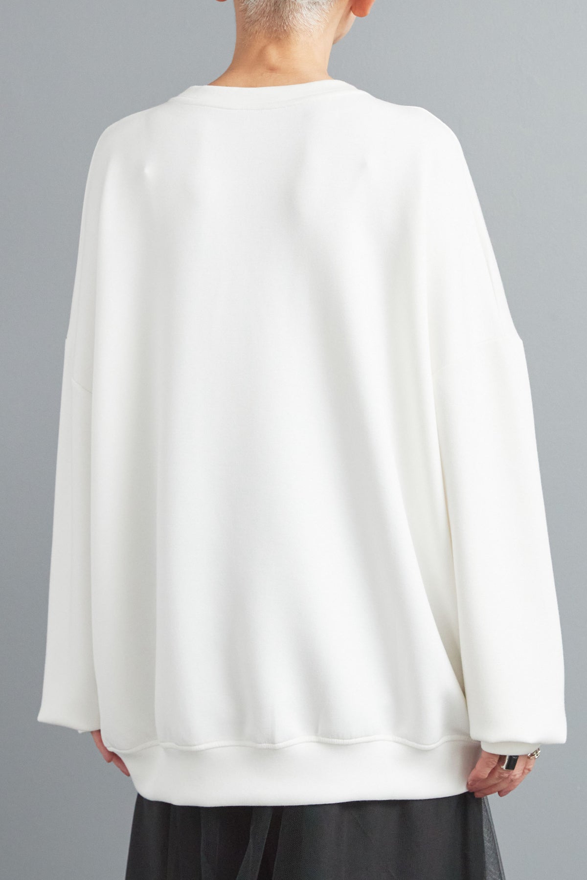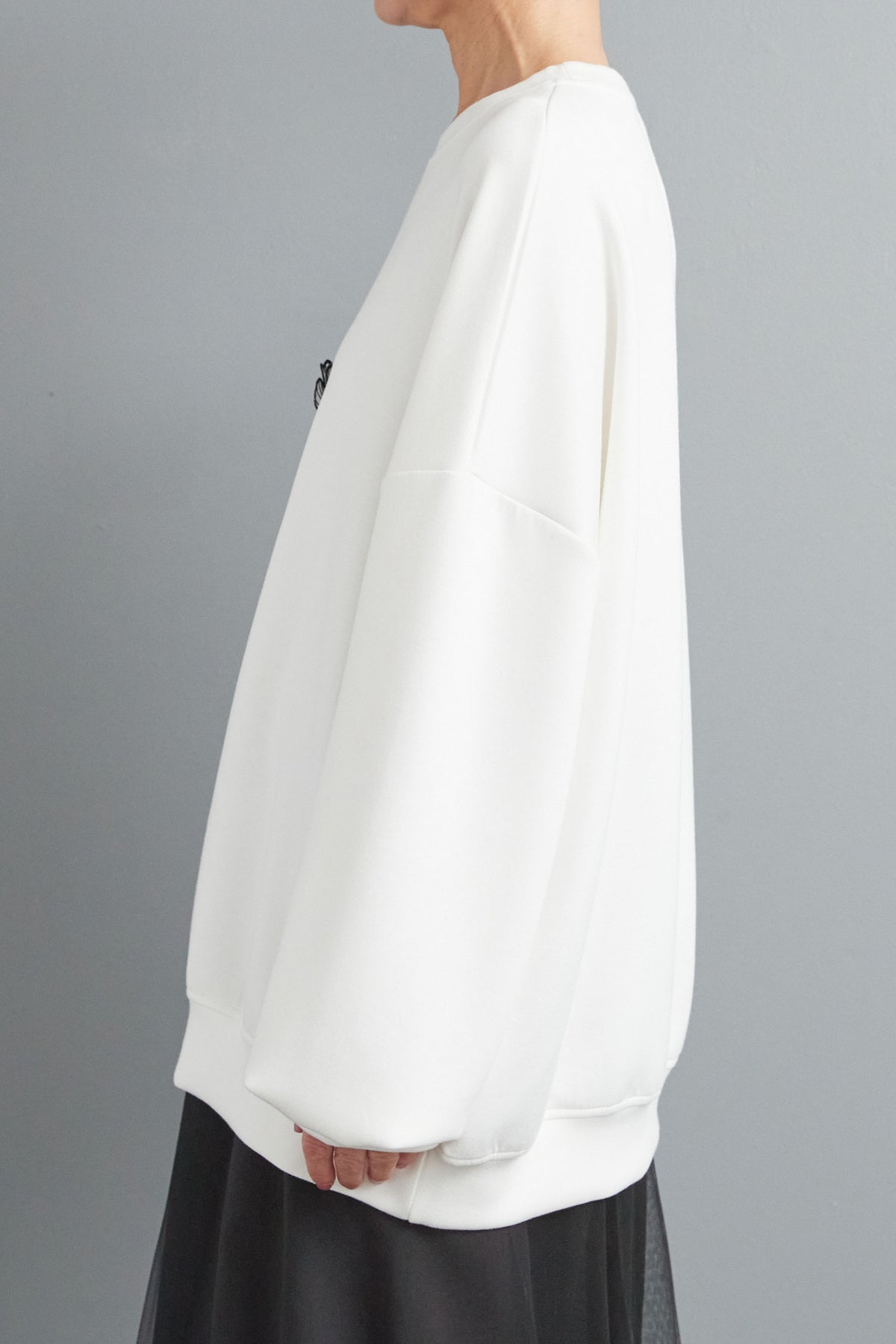 立体的なチュールフラワーが目を引くデザインプルオーバー。シンプルなシルエットに華やかな花モチーフをあしらい、1枚でスタイリングの主役になるアイテムです。柔らかな着心地でデイリーからお出かけまで活躍。カジュアルなパンツにもフェミニンなスカートにも相性抜群の万能トップスです。