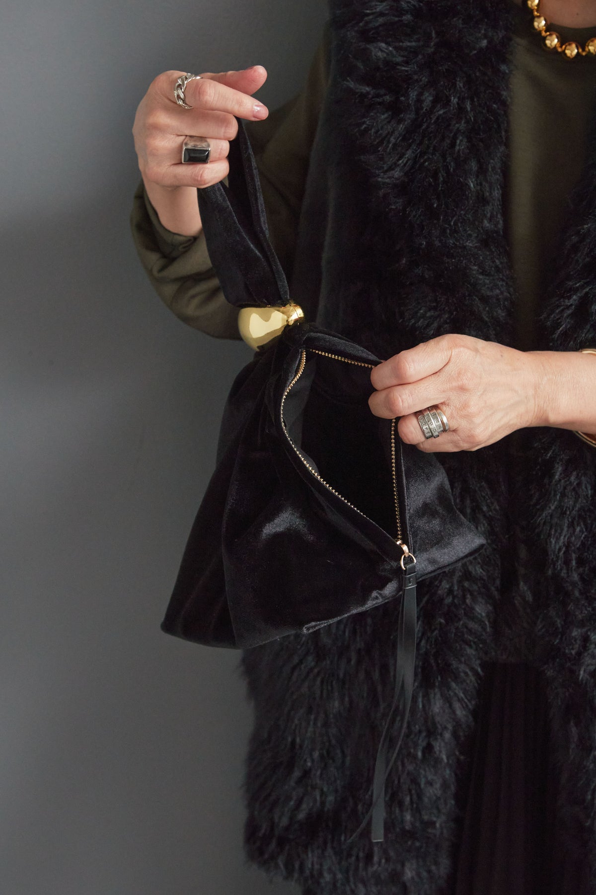【予約】ベロアゴールドバックルワンハンドルバッグを含んだコーデセット商品を探す↓
