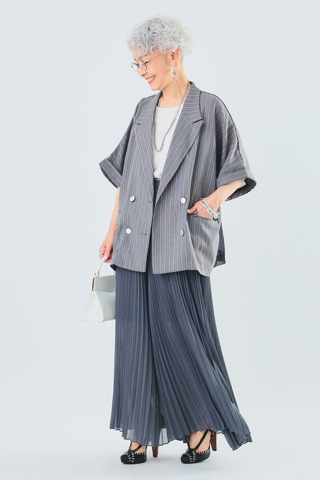 【予約】バックオーガンジーヘリンボーンストライプサマージャケット