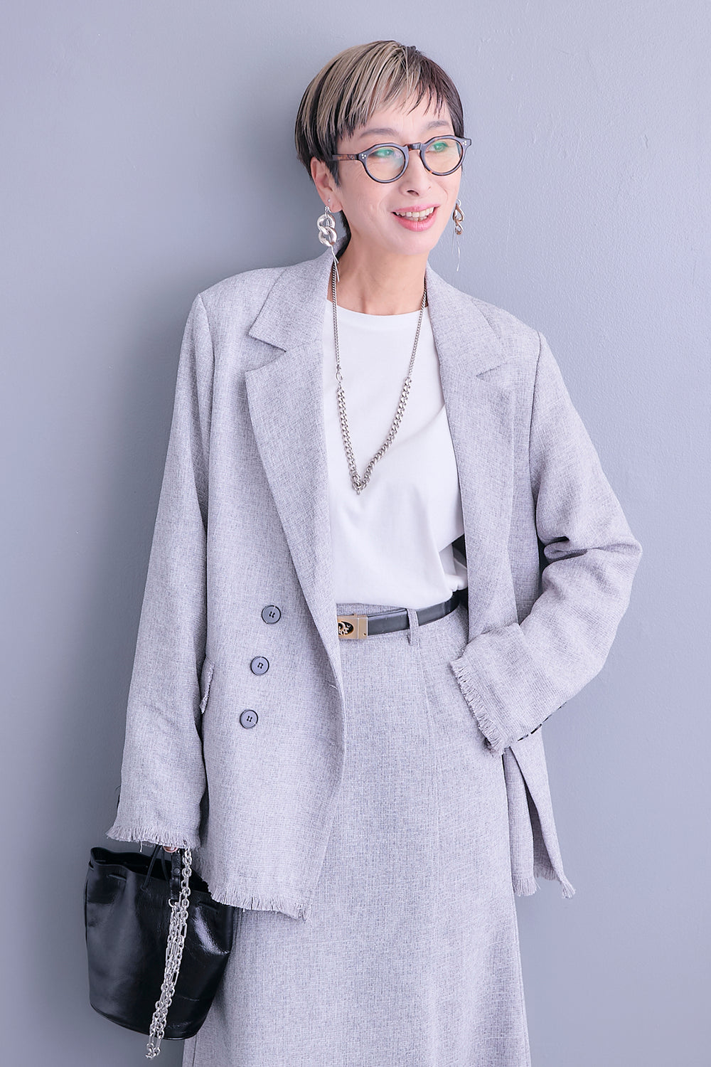 【即納】サマーツイードハーフスリーブテーラードジャケット