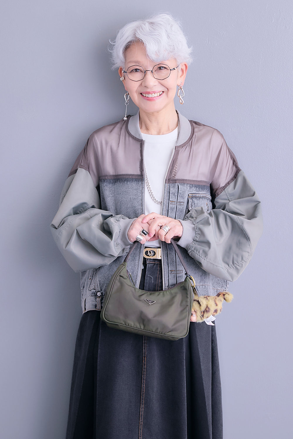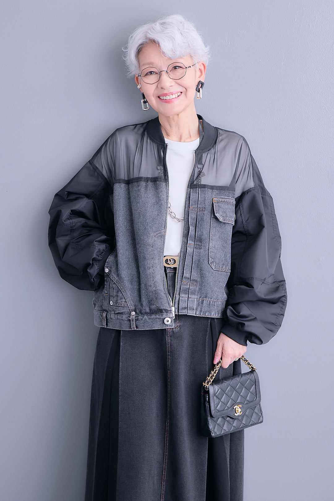 【予約】デニムコンビショルダーオーガンジーブルゾン