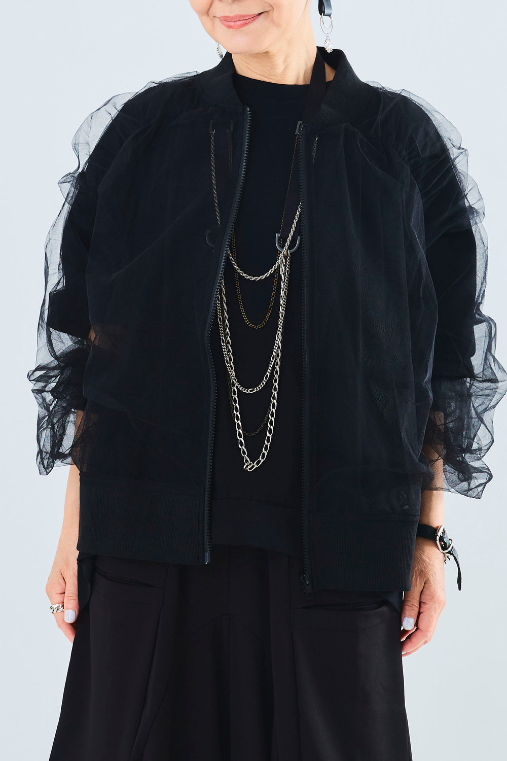 【予約】ギャザーボリュームスリーブチュールブルゾン