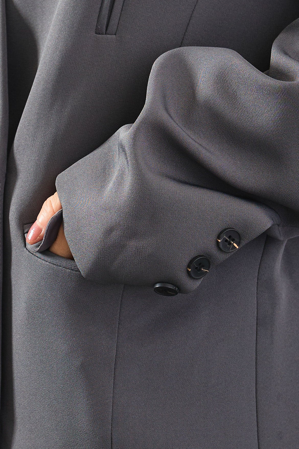 存在感のあるシルエットが魅力のオーバーサイズマキシジャケット。肩の落ちたラインとロング丈が抜け感を生み、羽織るだけでモードな印象に。厚手のインナーも合わせやすく、季節のアウターとして長く活躍します。シンプルながらも洗練されたデザインで、大人のスタイルを引き立てる一枚です。