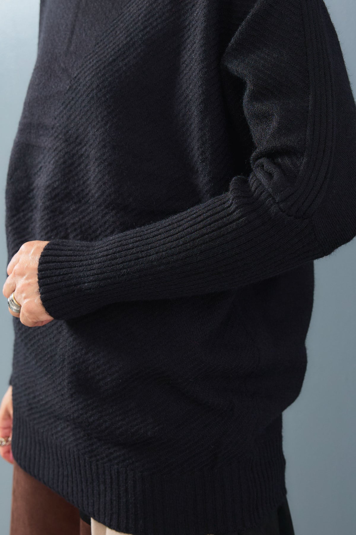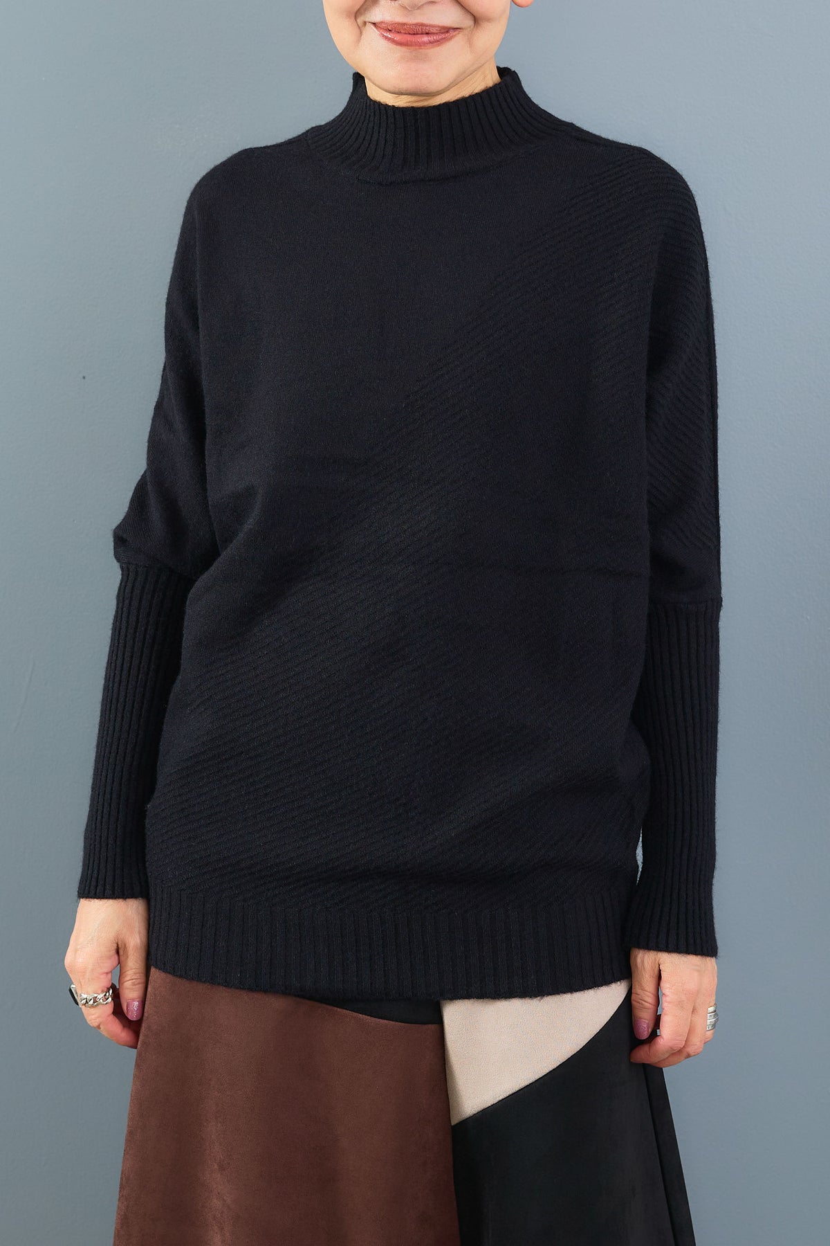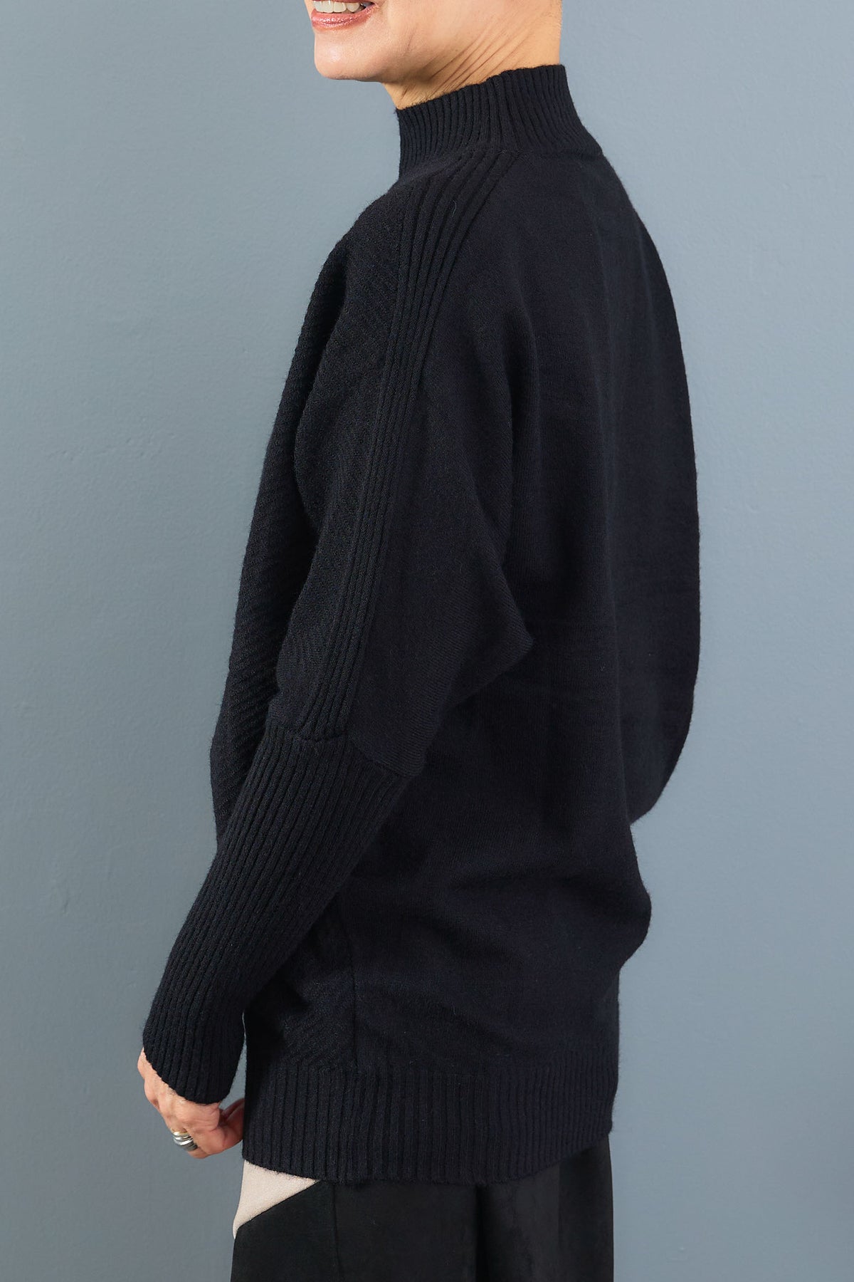 柔らかな肌触りと程よい厚みが魅力のロングリブドルマンニット。ゆったりとしたドルマンスリーブがリラクシーな着心地を叶えつつ、長めのリブが全体をすっきりと引き締めます。ボトムを選ばず合わせやすいデザインで、デイリー使いからオフィスカジュアルまで幅広く活躍する一枚です。