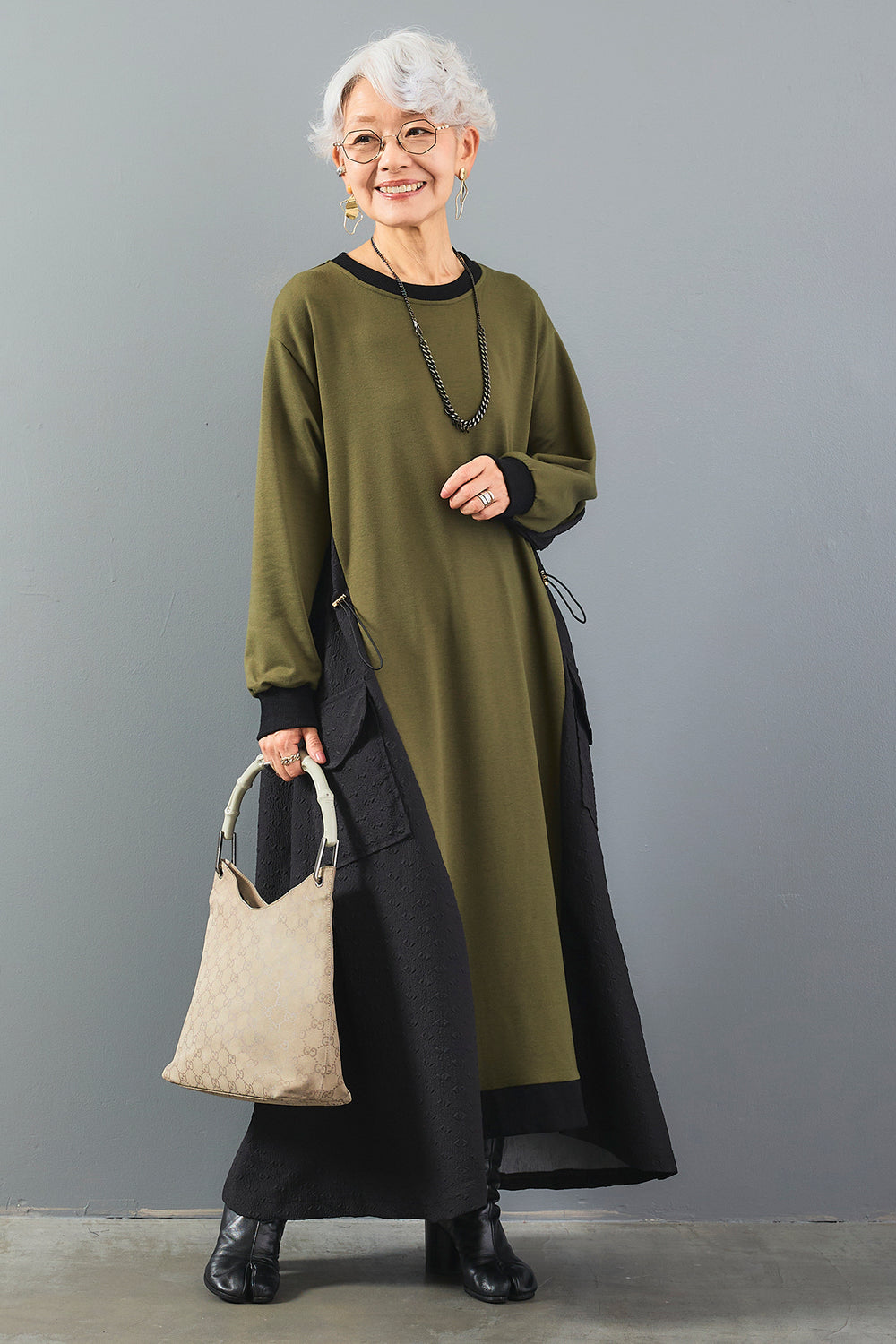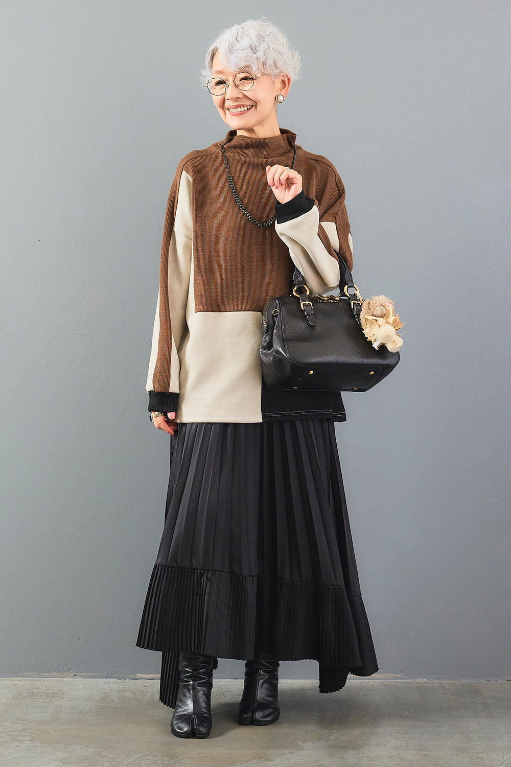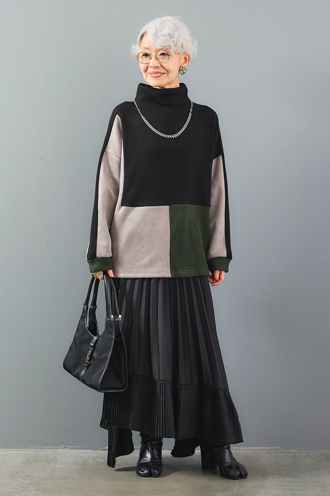 【予約】ZIPサイドプリーツニットコンビプルオーバー