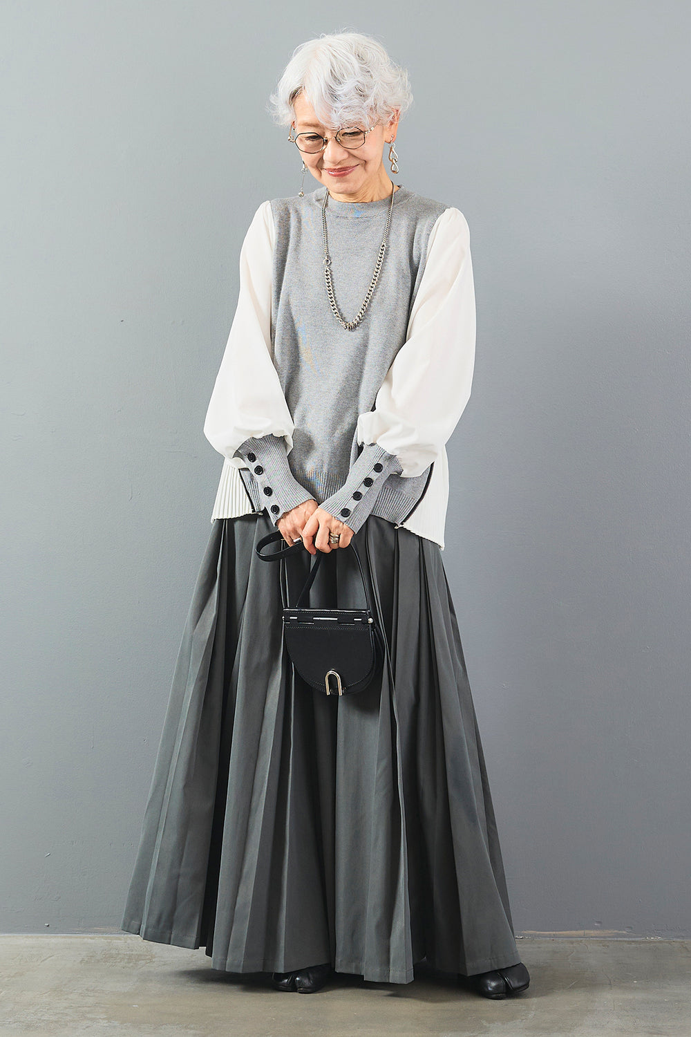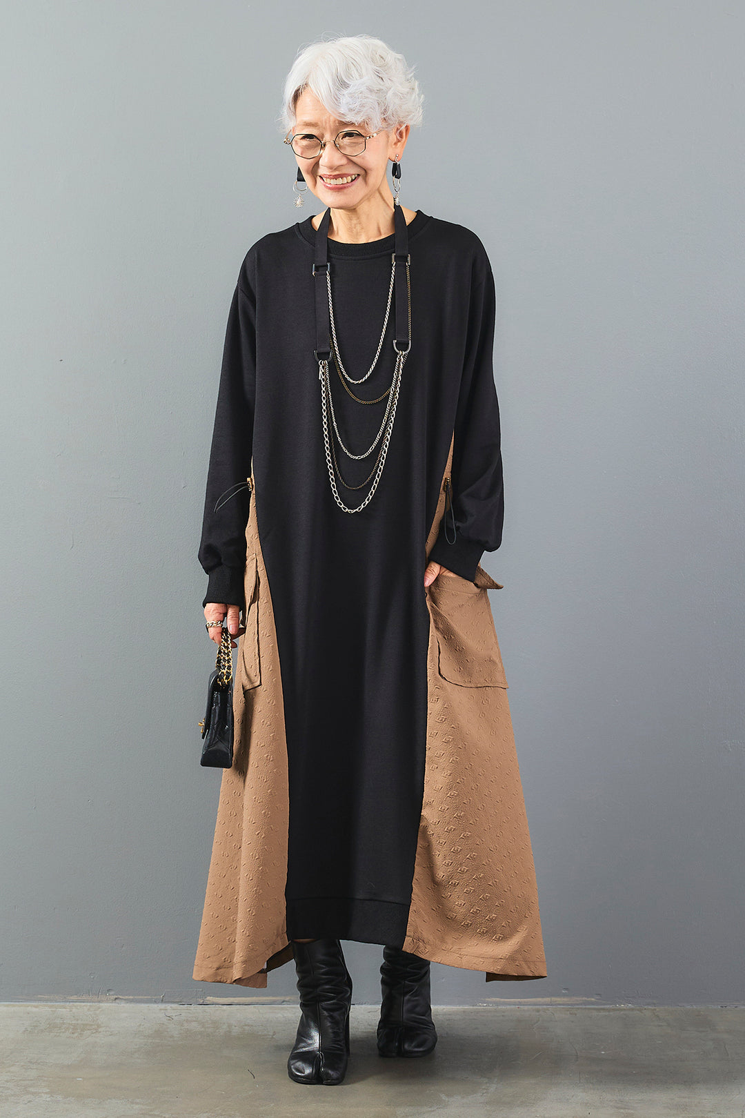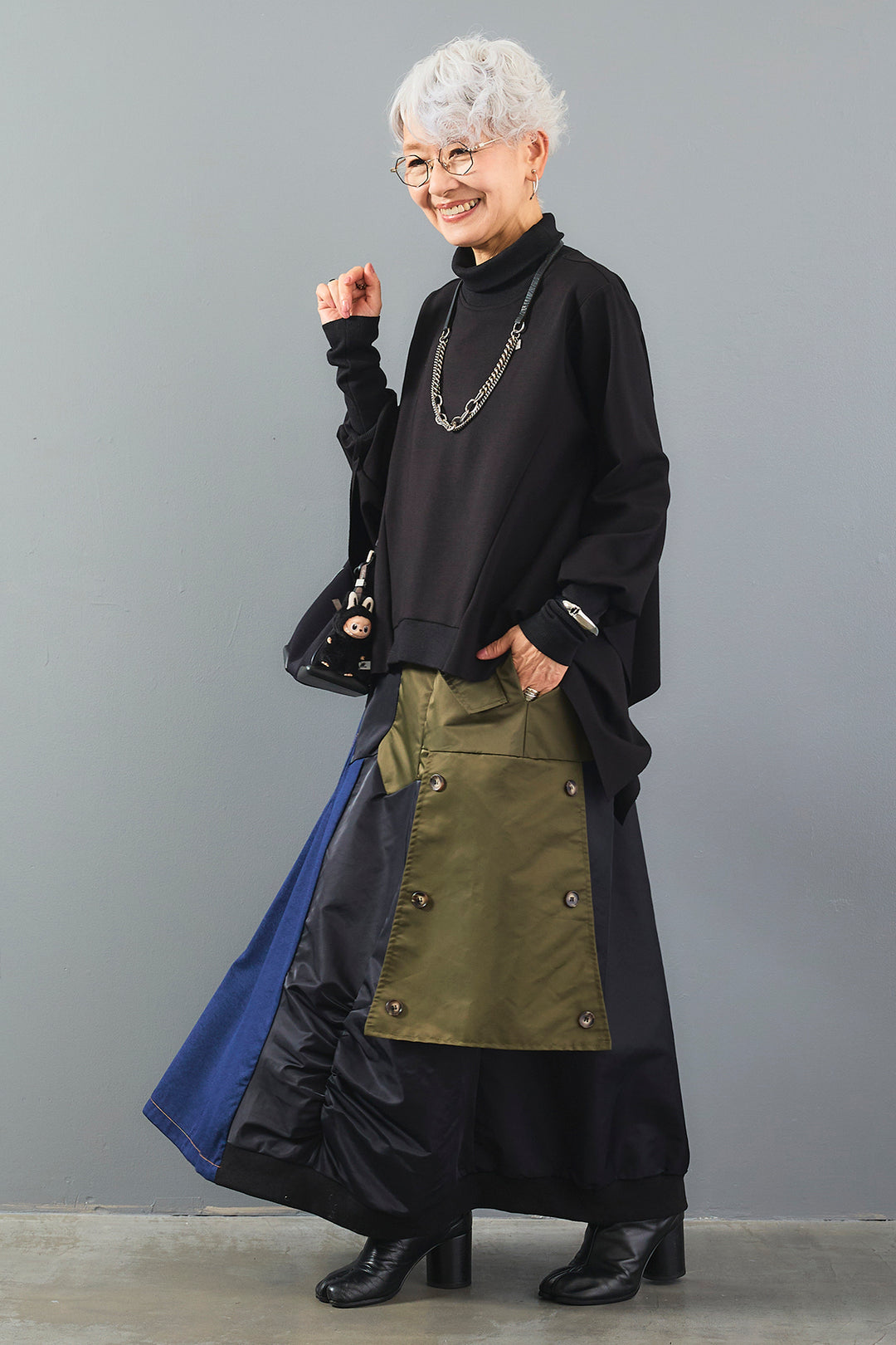 【予約】ZIPサイドプリーツニットコンビプルオーバー