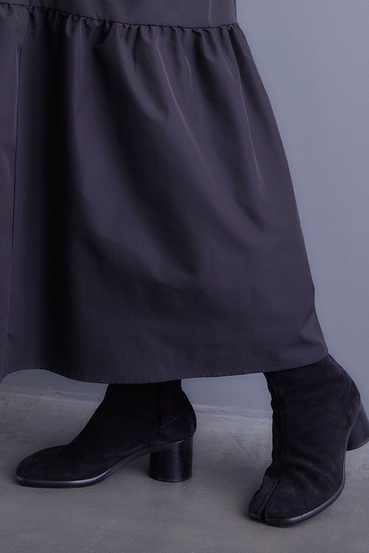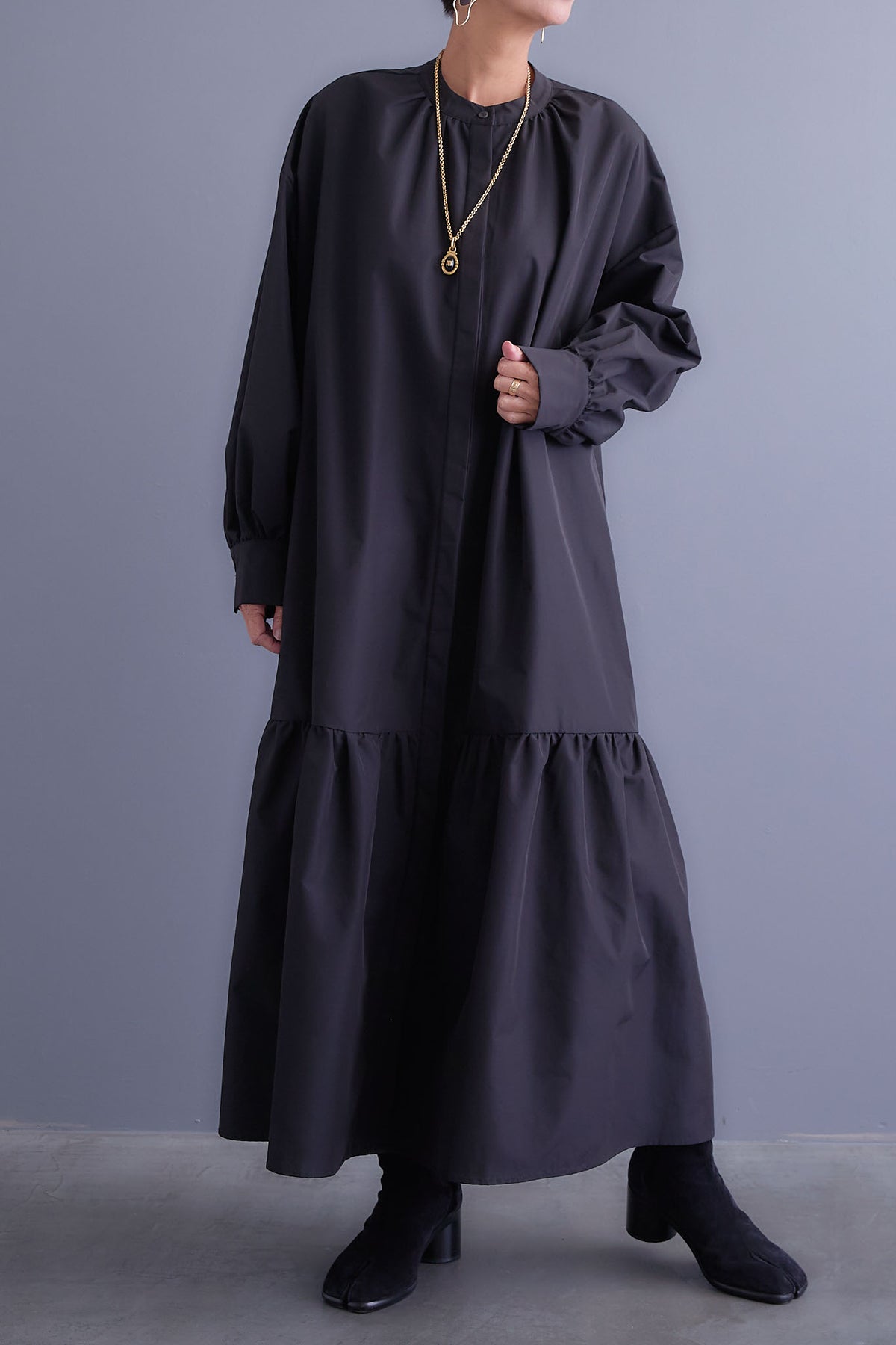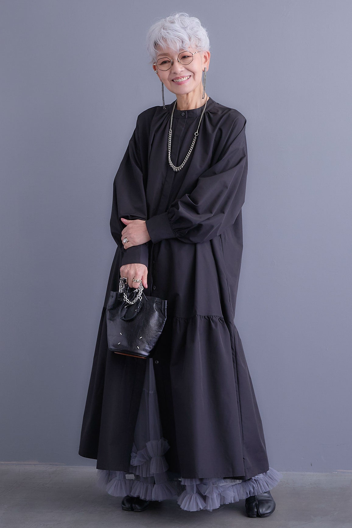 ドラマチックなボリュームスリーブが特徴のバックシャンワンピース。立体感のある袖デザインが華やかさを演出し、後ろ姿まで抜かりないバックスタイルがポイントです。シンプルながらも存在感のあるシルエットで、1枚でコーディネートが完成。柔らかな素材感と程よい落ち感で、着心地も抜群。アクセサリーや小物でアクセントを加えることで、カジュアルにもフォーマルにも対応できる万能な一着です。
