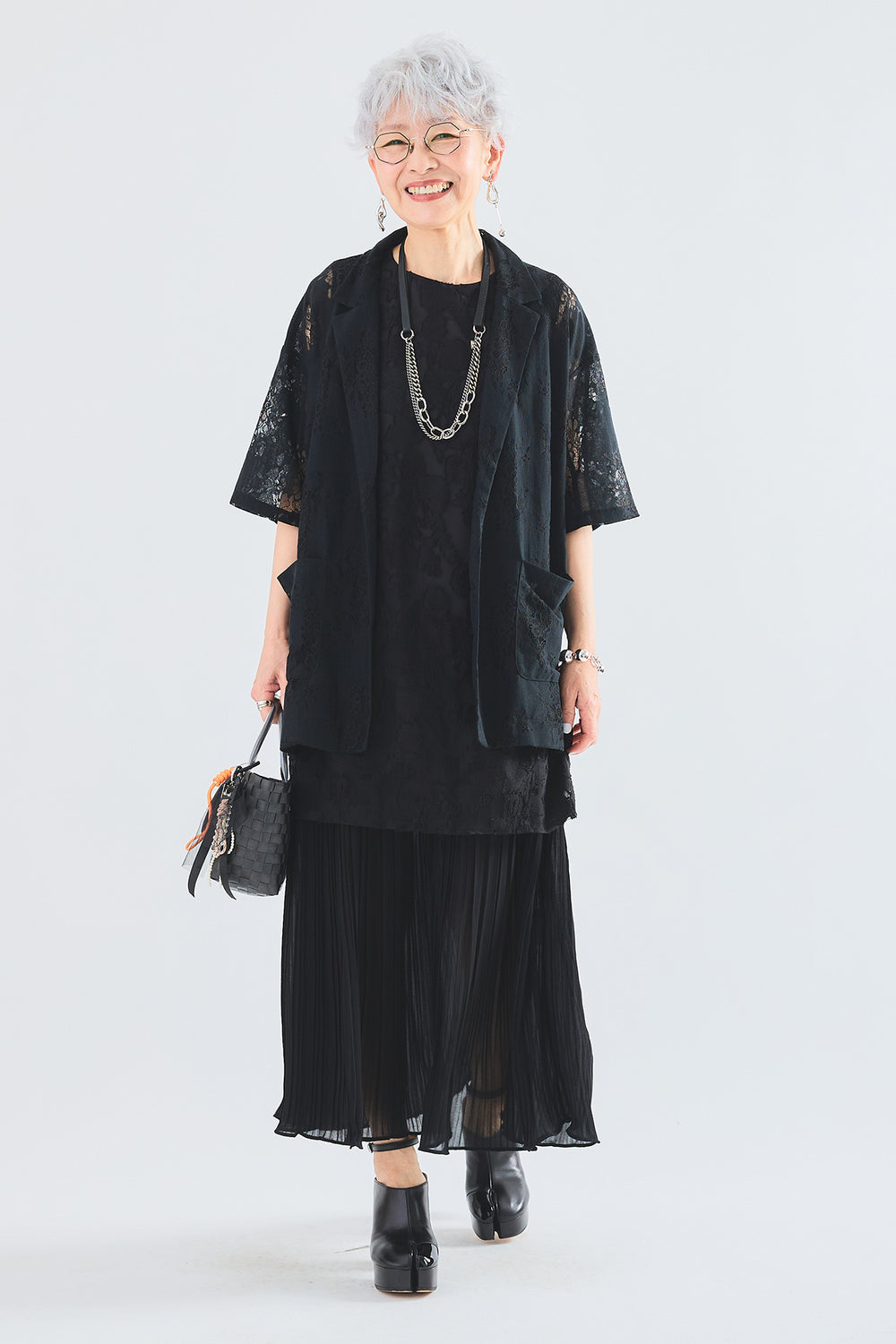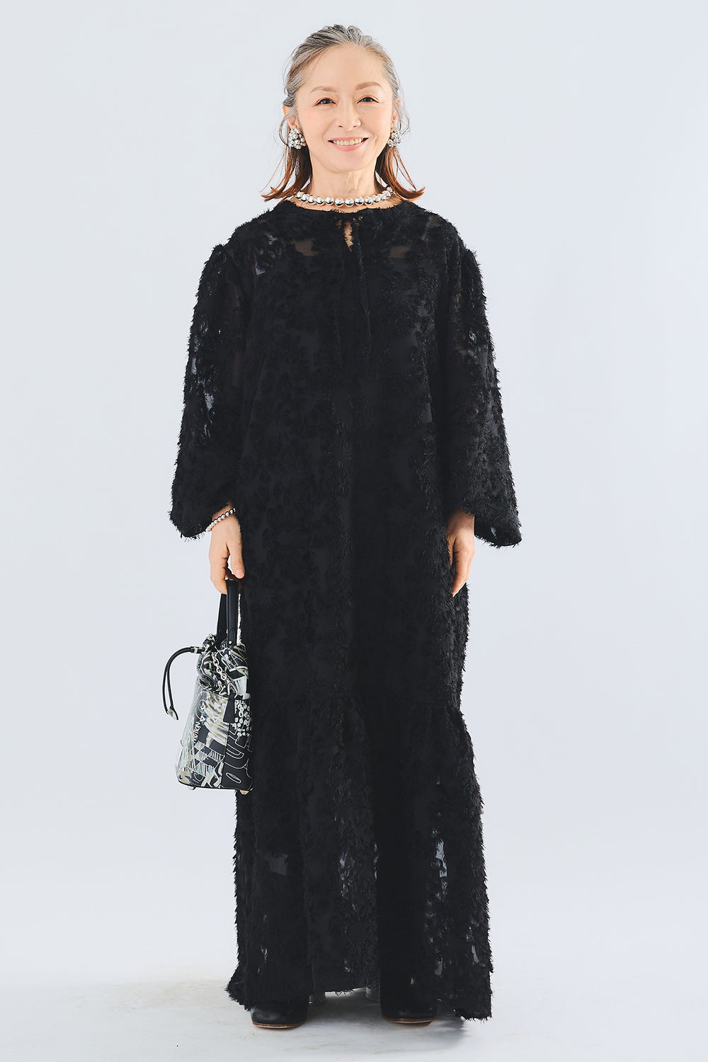 【予約】ラメレースフェザーエンブロイダリースリーブワンピース