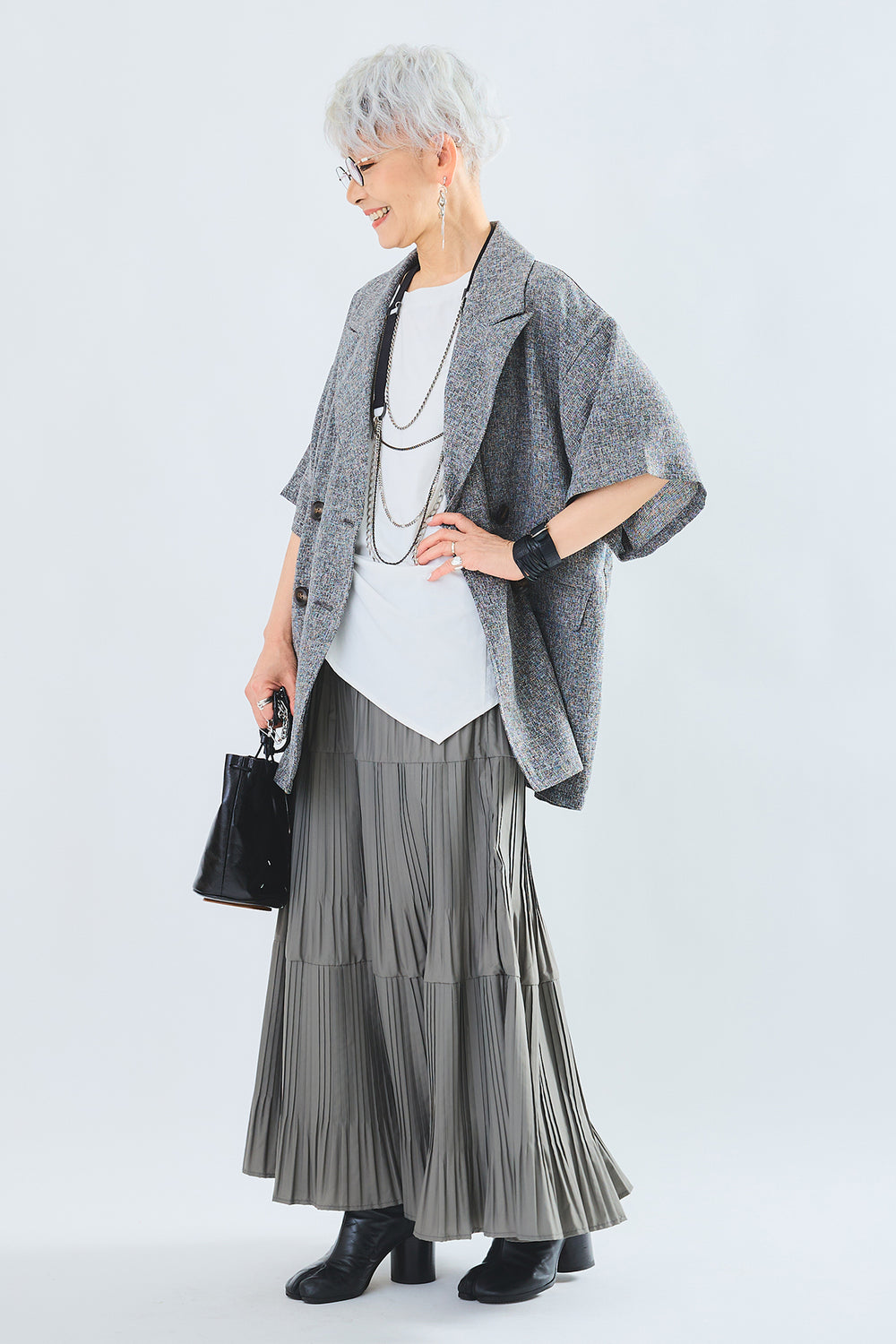 【即納】シャツレイヤードアシンメトリーモードトップス