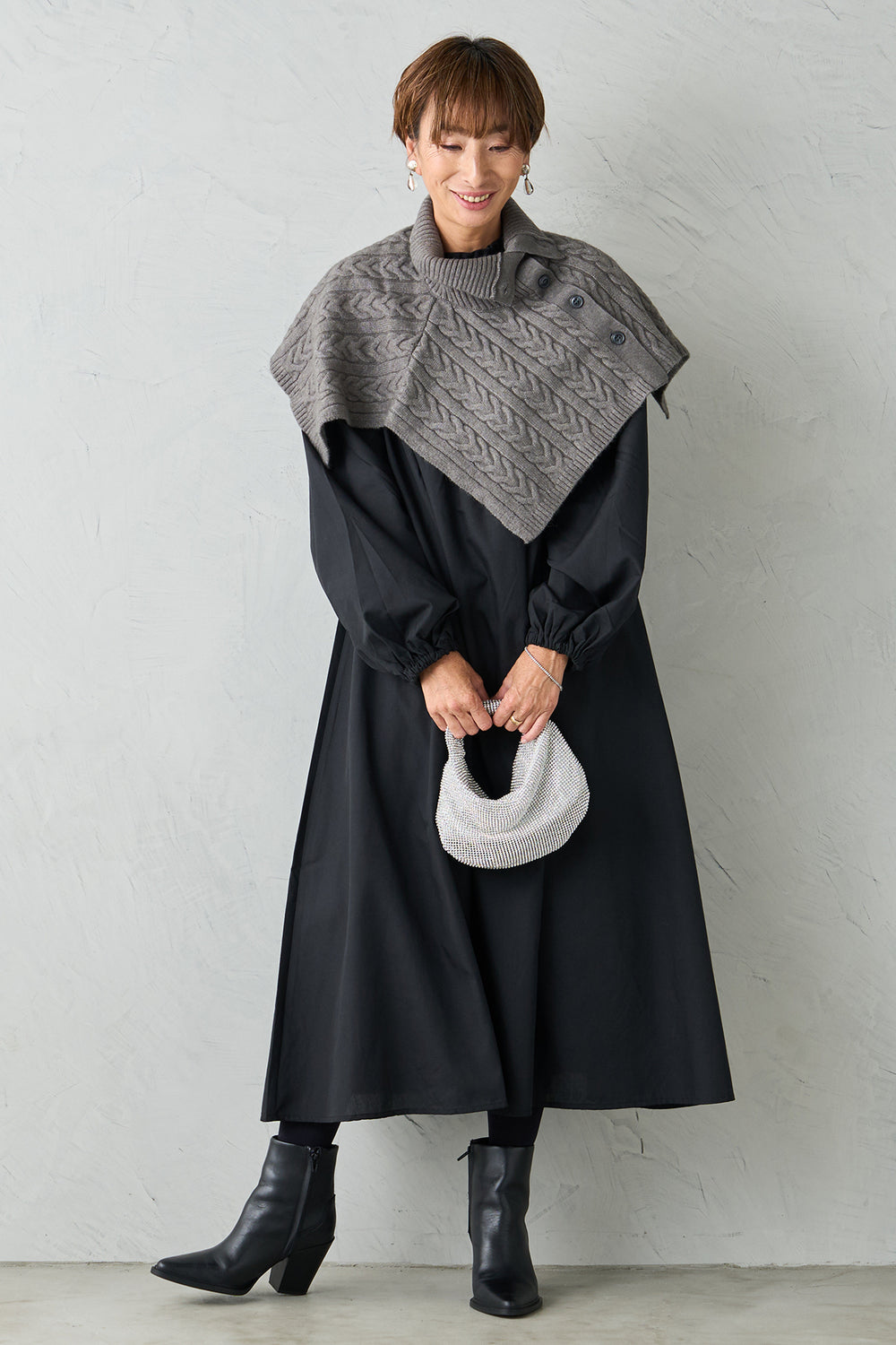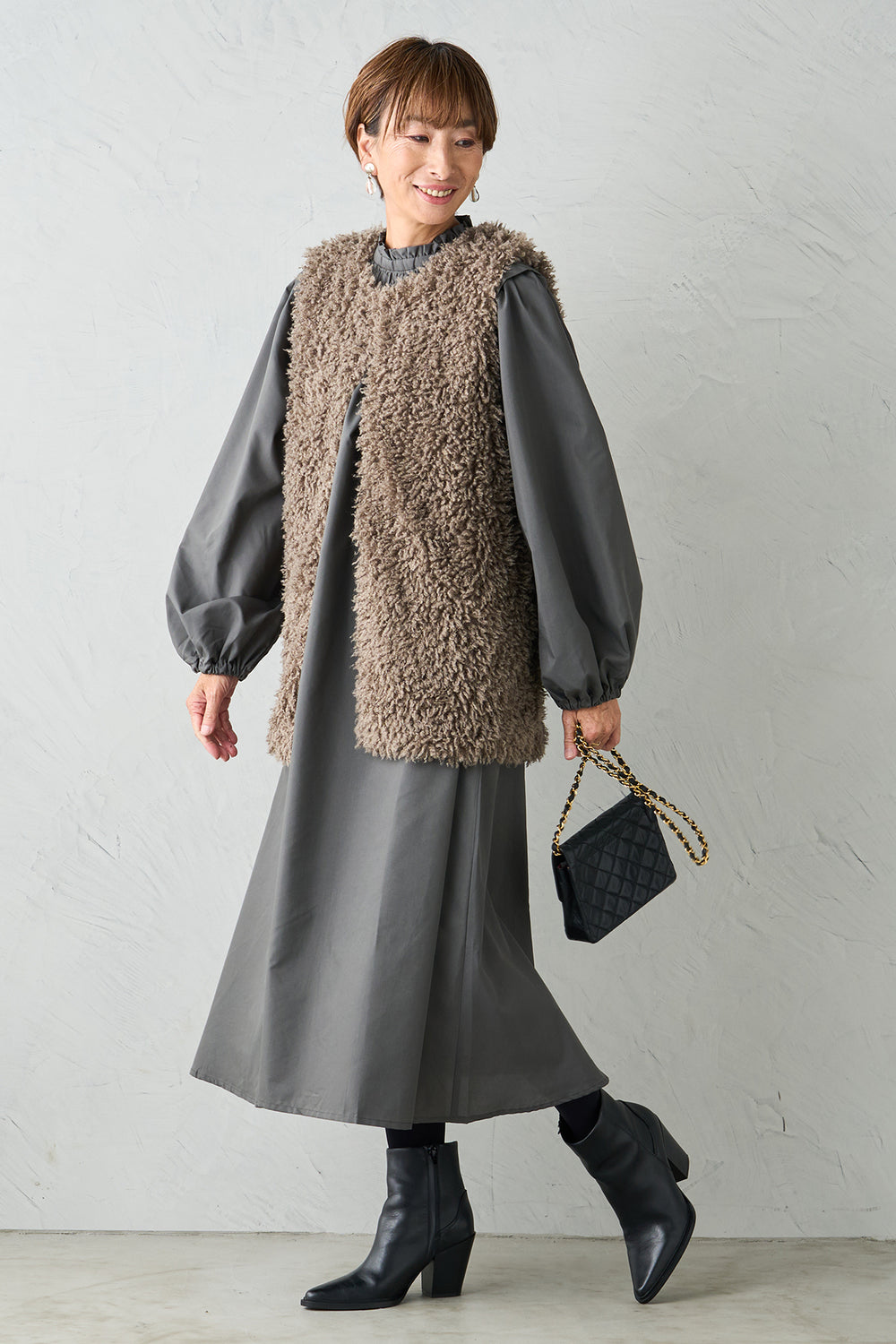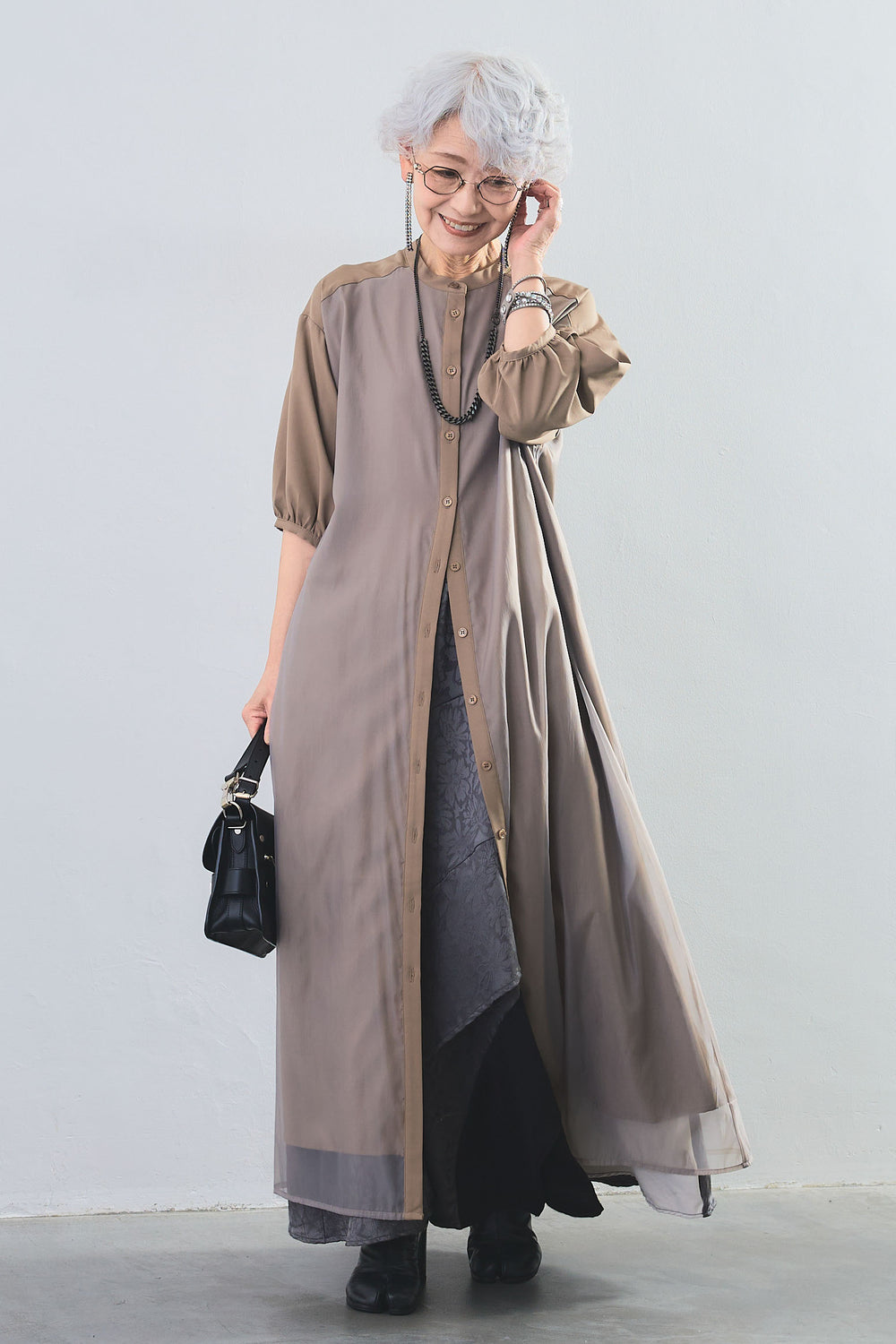 【即納】ブロード×オーガンジーレイヤードパフスリーブシャツワンピース