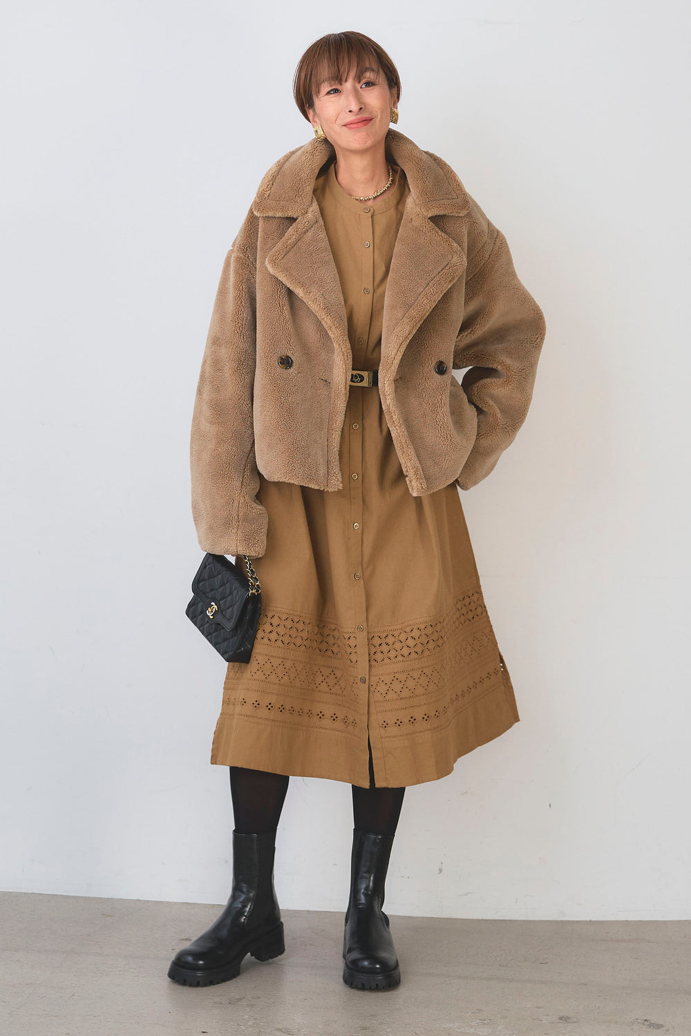 【即納】裏起毛ぽかぽかフリースシャツワンピース