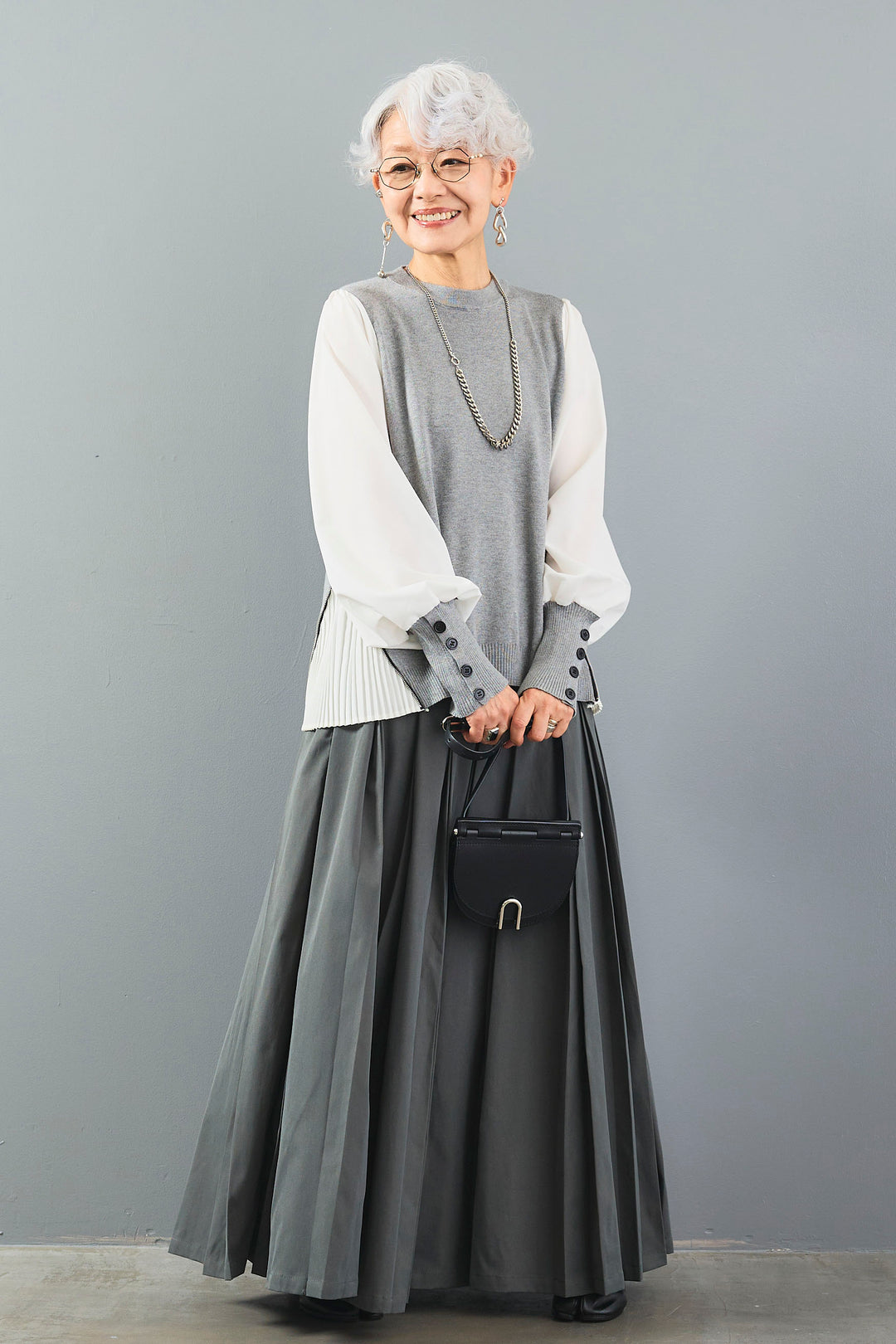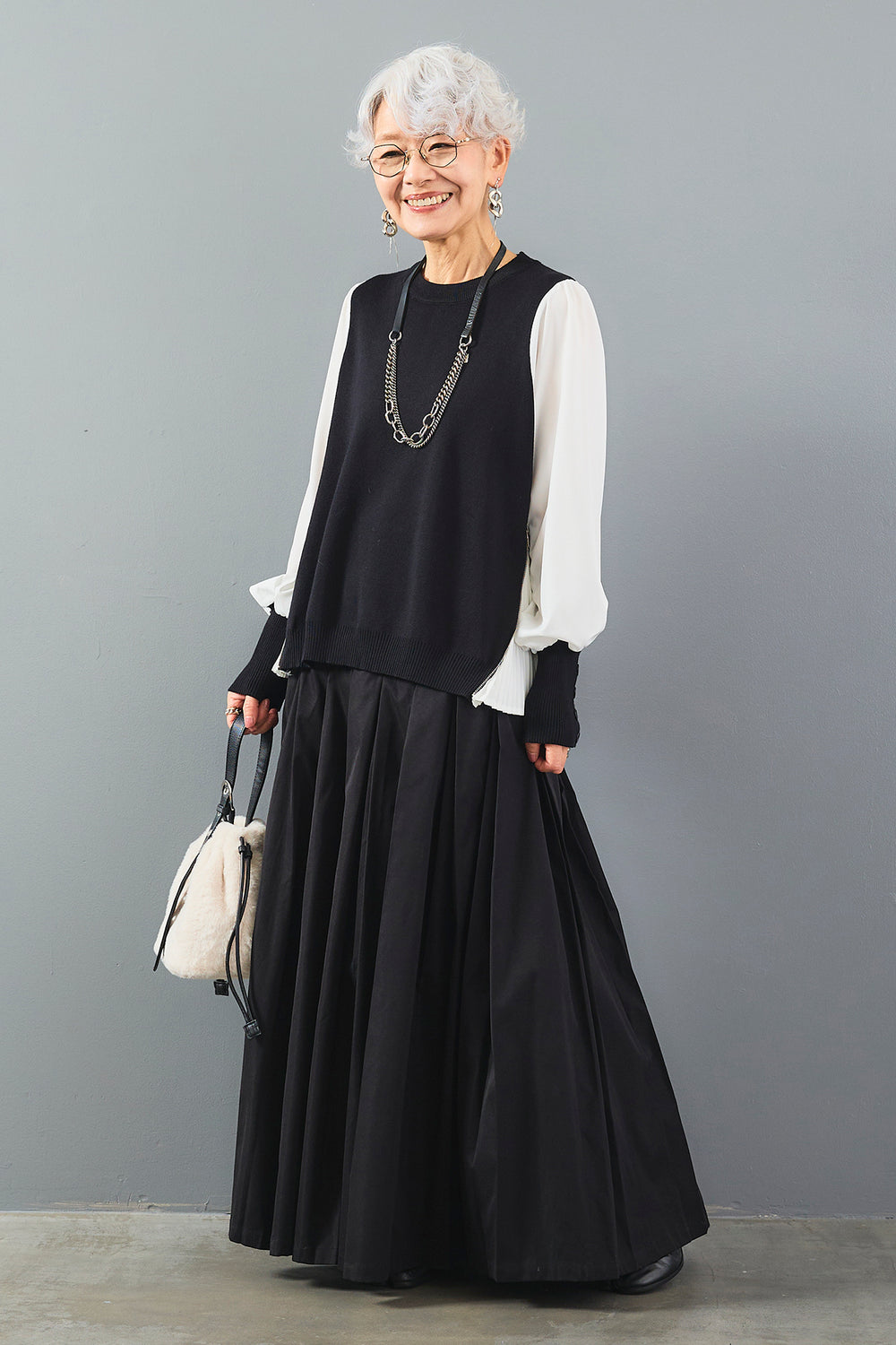モヘアタッチの柔らかな質感とローゲージの編み目が特徴的なシアーニット。透け感のある素材が軽やかな印象を与え、上品でありながらもリラックス感のある着こなしが楽しめます。シンプルなデザインでありながら、ニットの暖かさとシアー素材の軽さが絶妙に調和し、春先や秋の季節にぴったりのアイテムです。