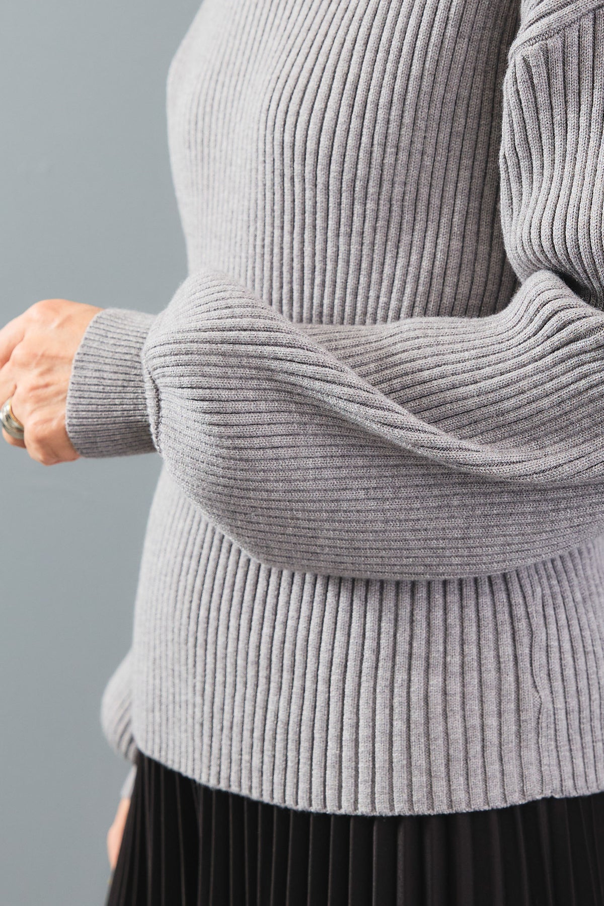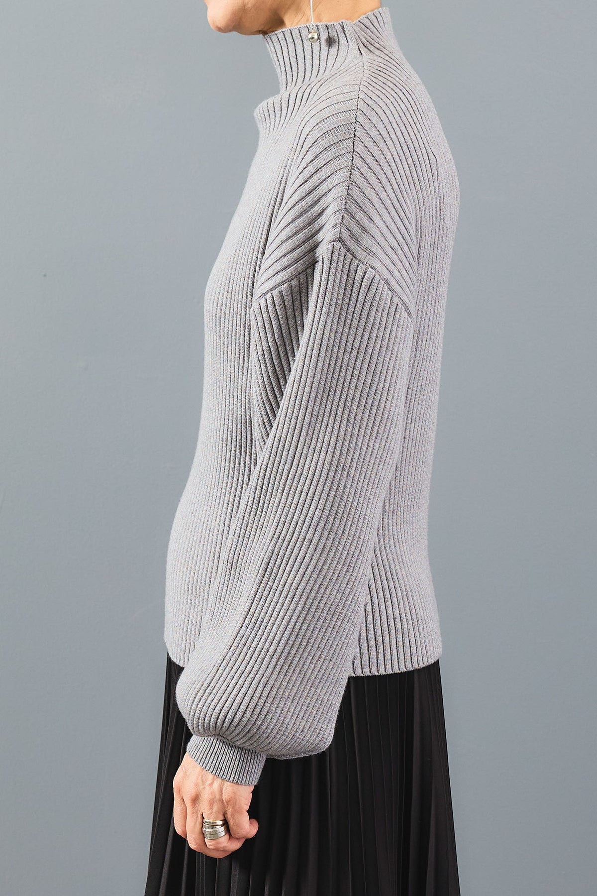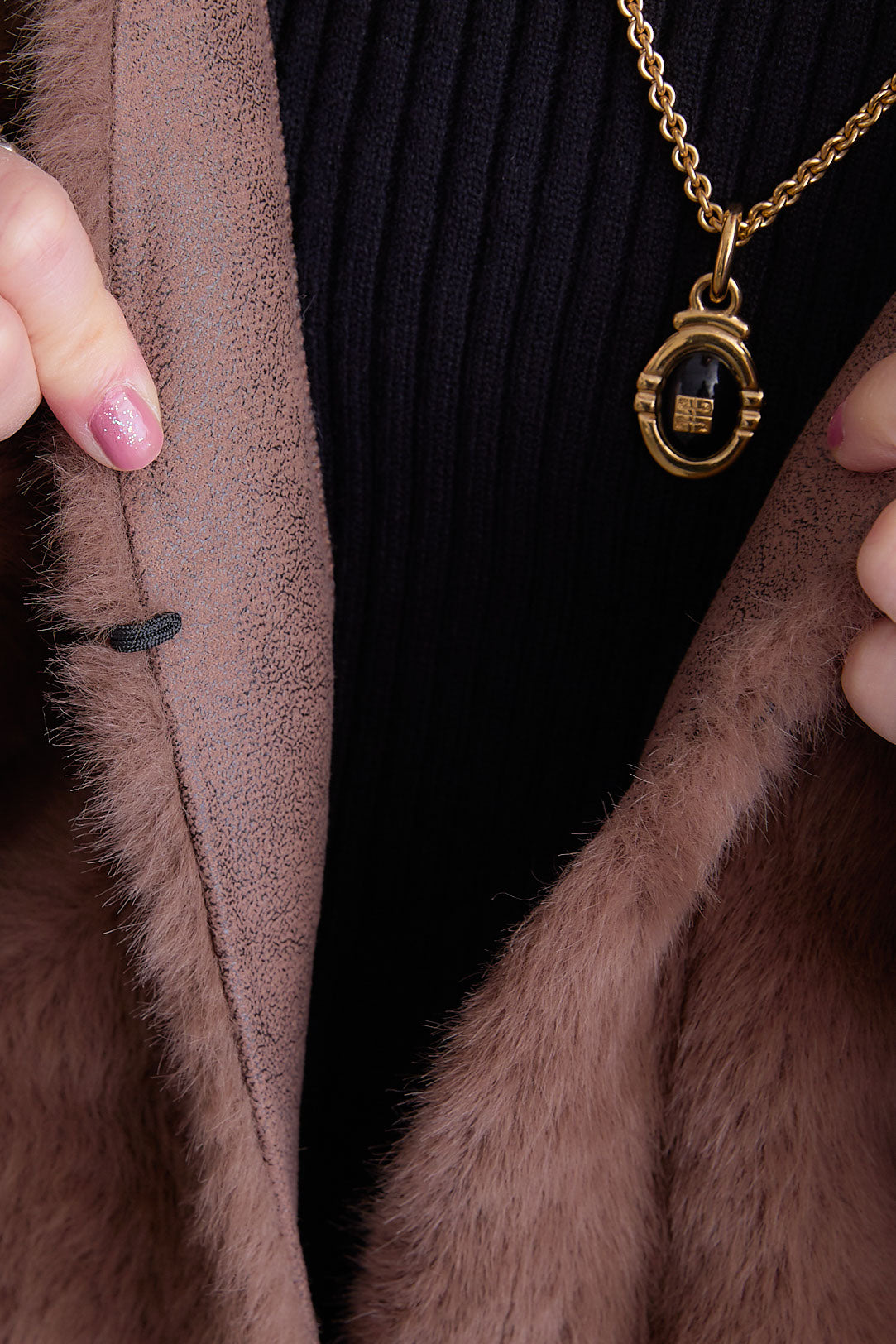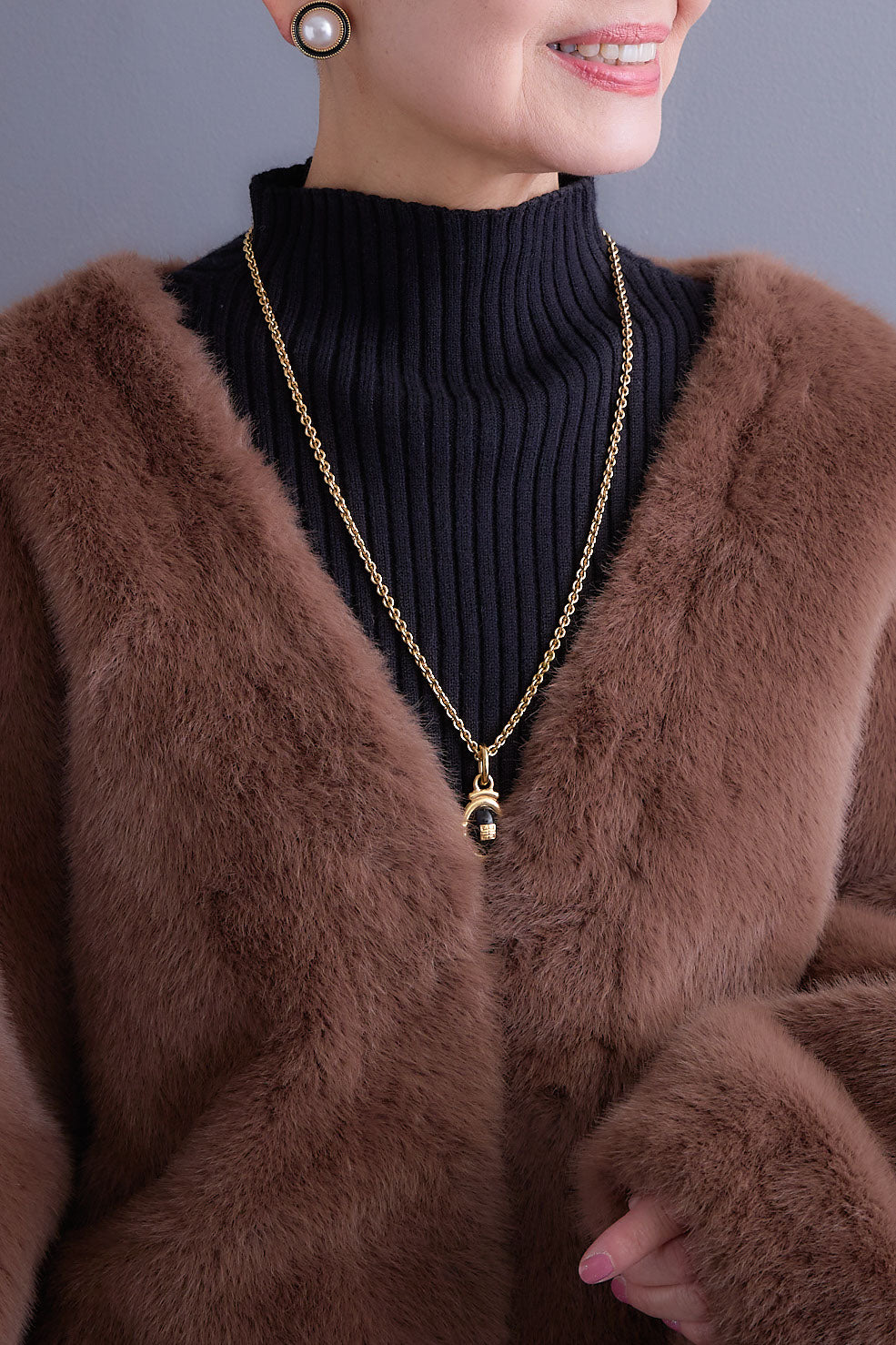 【SET】ボリュームスリーブハイネックリラクシーニット+ノーカラーラウンドシルエットファーコート+アシンメトリープリーツスカート(3set)