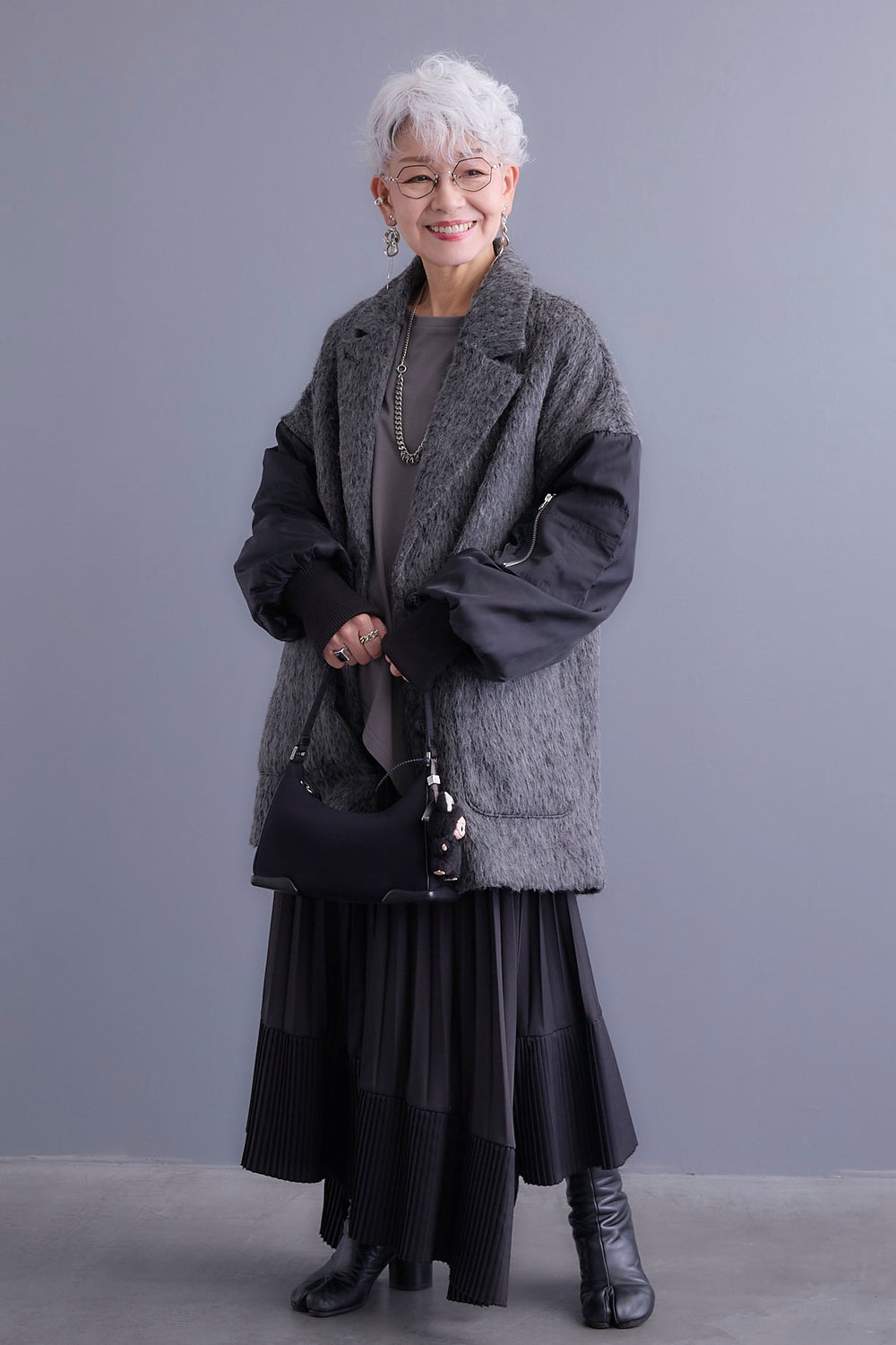 【新色追加】【SET】アシンメトリーロンT+チュールレイヤードMA-1シャギーオーバーコート+アシンメトリープリーツスカート(3set)
