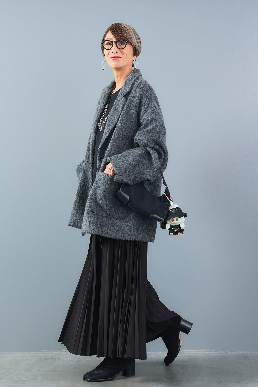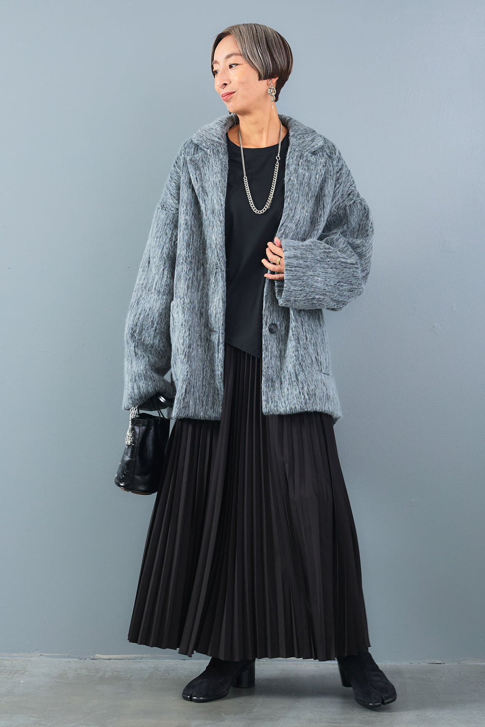 【SET】アシンメトリーロンT+シャギーテーラードコート+プリーツフレアパンツ(3set)
