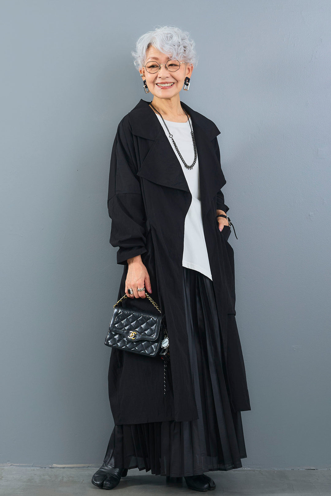 【SET】アシンメトリーロンT+ワッシャートレンチライクライトコート+レザーライクプリーツスカート(3set)