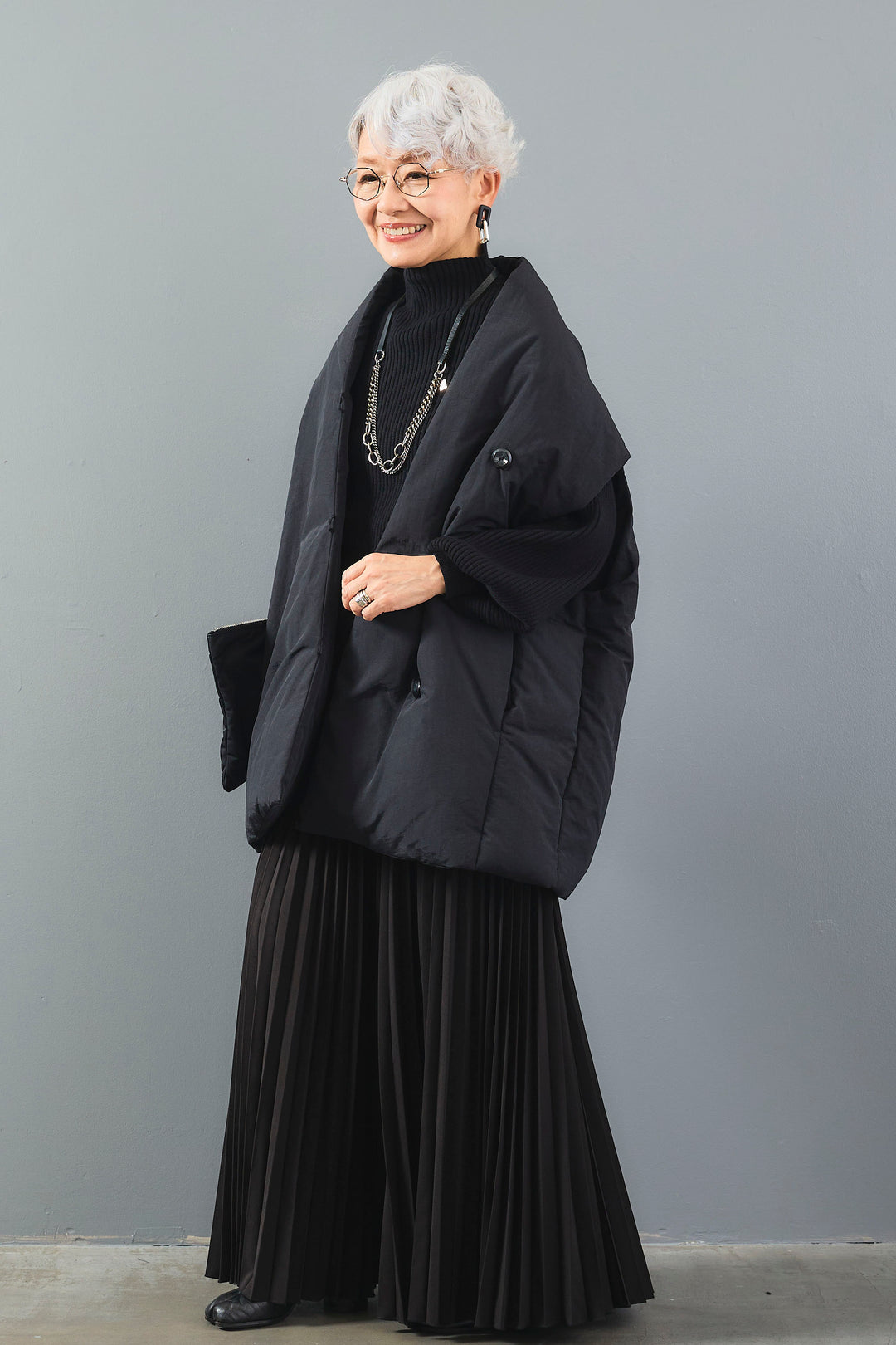 【SET】ボリュームスリーブハイネックリラクシーニット+モードライクファイバーダウンベスト+プリーツフレアパンツ(3set)