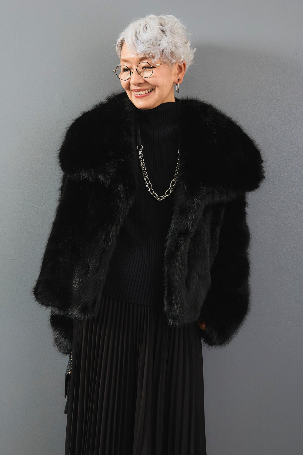 【SET】ボリュームスリーブハイネックリラクシーニット+オーバーカラーファーコート+プリーツフレアパンツ(3set)