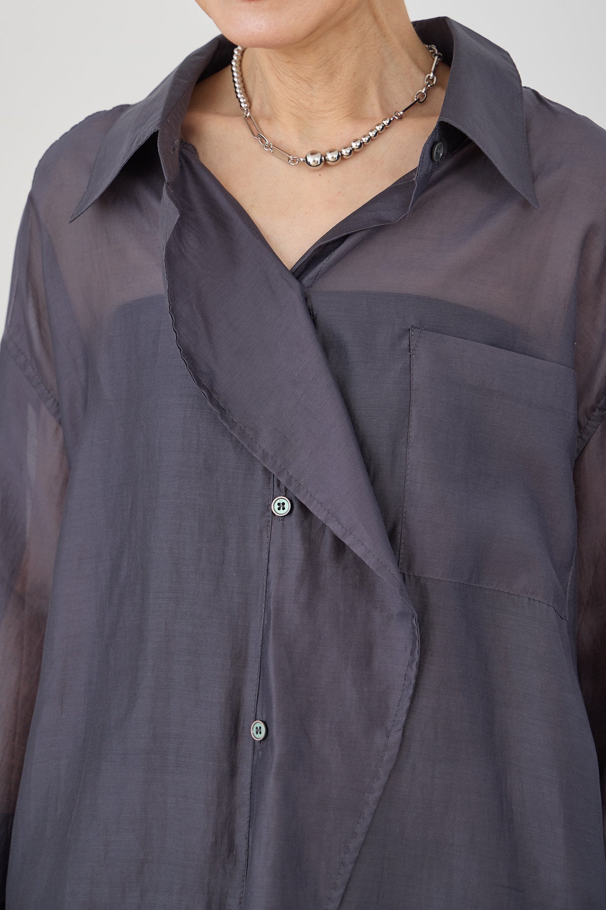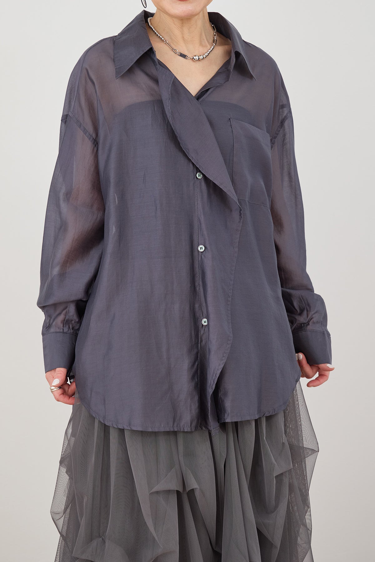 【予約】フロントレイヤードアシンメトリーシアーシャツ
