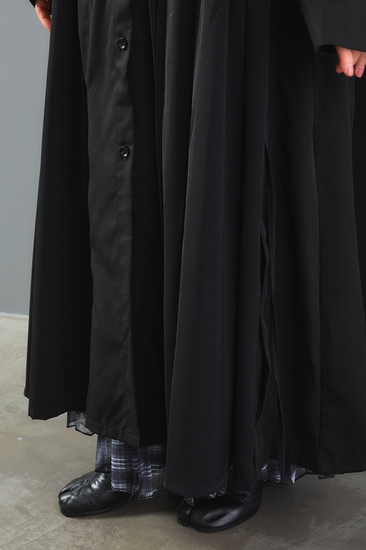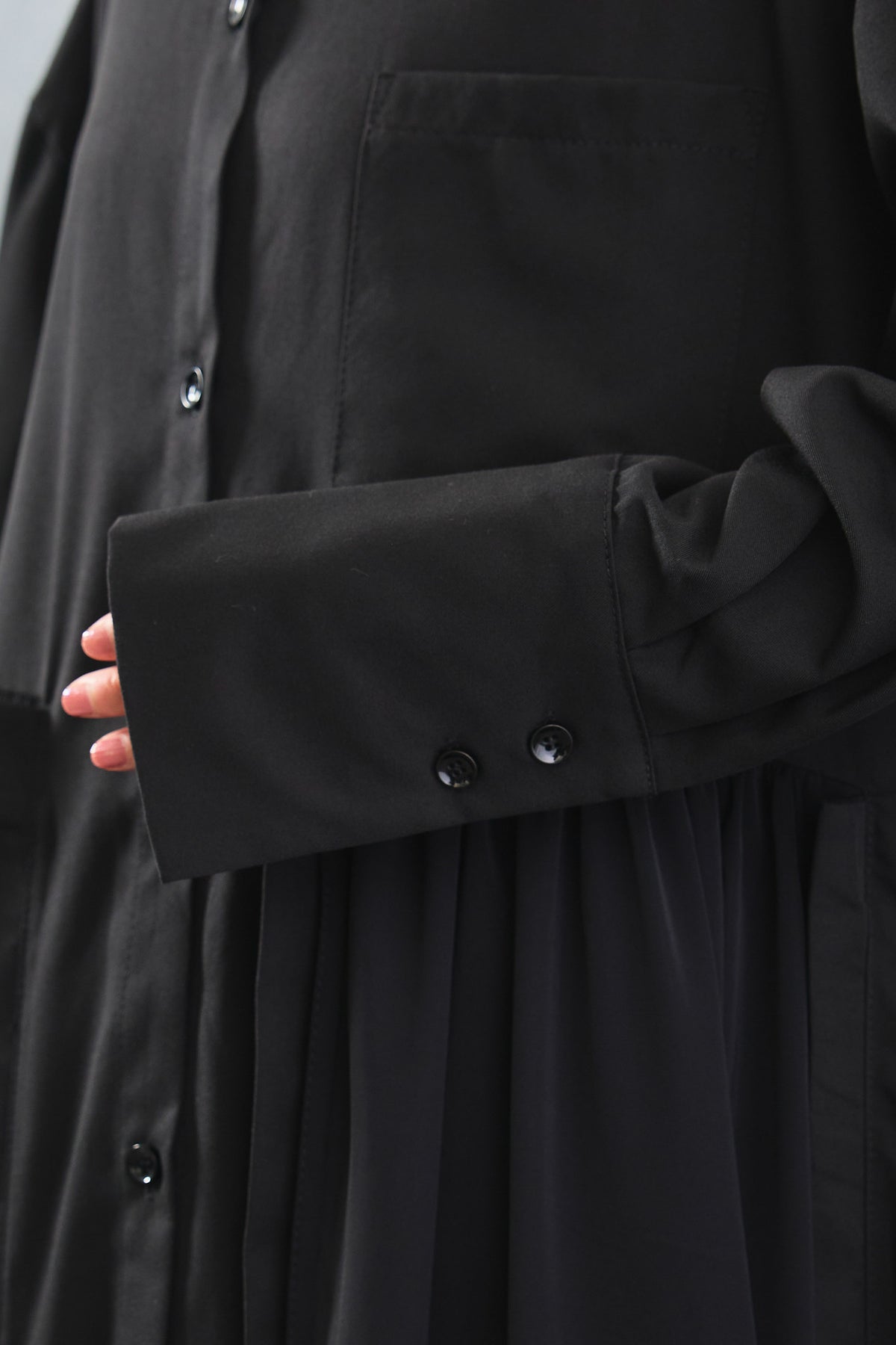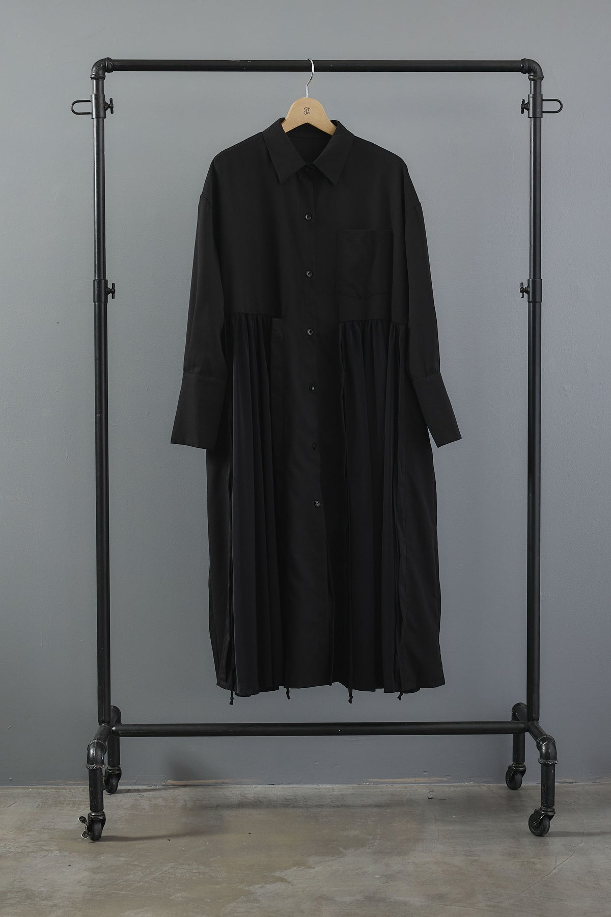 軽やかな素材で仕立てたロング丈のシャツワンピース。サイドのコードを絞ることでシルエットの変化を楽しめ、ゆったりとした着心地ながらもスタイルアップを叶えます。羽織りとしても活躍し、季節の変わり目にぴったり。動くたびに揺れる裾が印象的で、モード感漂う一枚です。