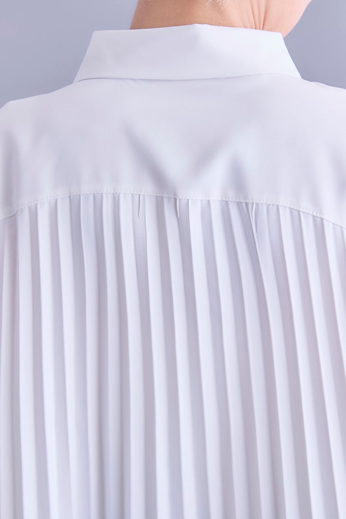 ふんわりとしたバルーンシルエットに、バックスタイルのプリーツが印象的なブラウス。動くたびに揺れるプリーツが後ろ姿に表情を加え、シンプルながらも存在感のある一枚です。フロントはすっきりと仕上げることで、甘さを抑えたバランスに。パンツにもスカートにも合わせやすく、コーディネートに軽やかな変化をもたらします。