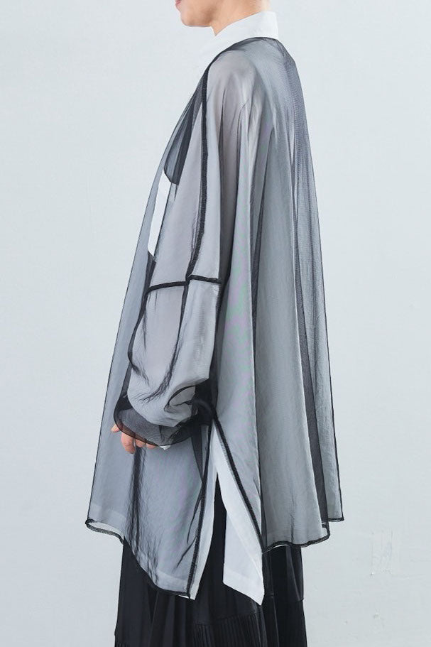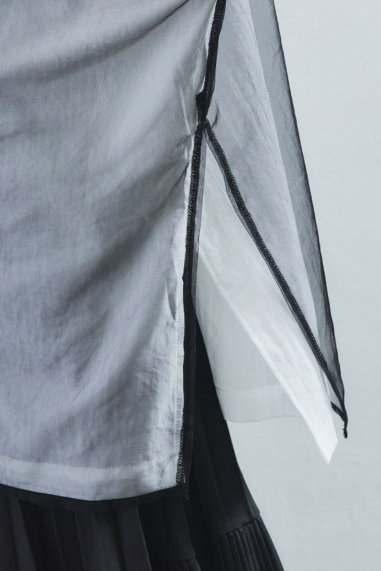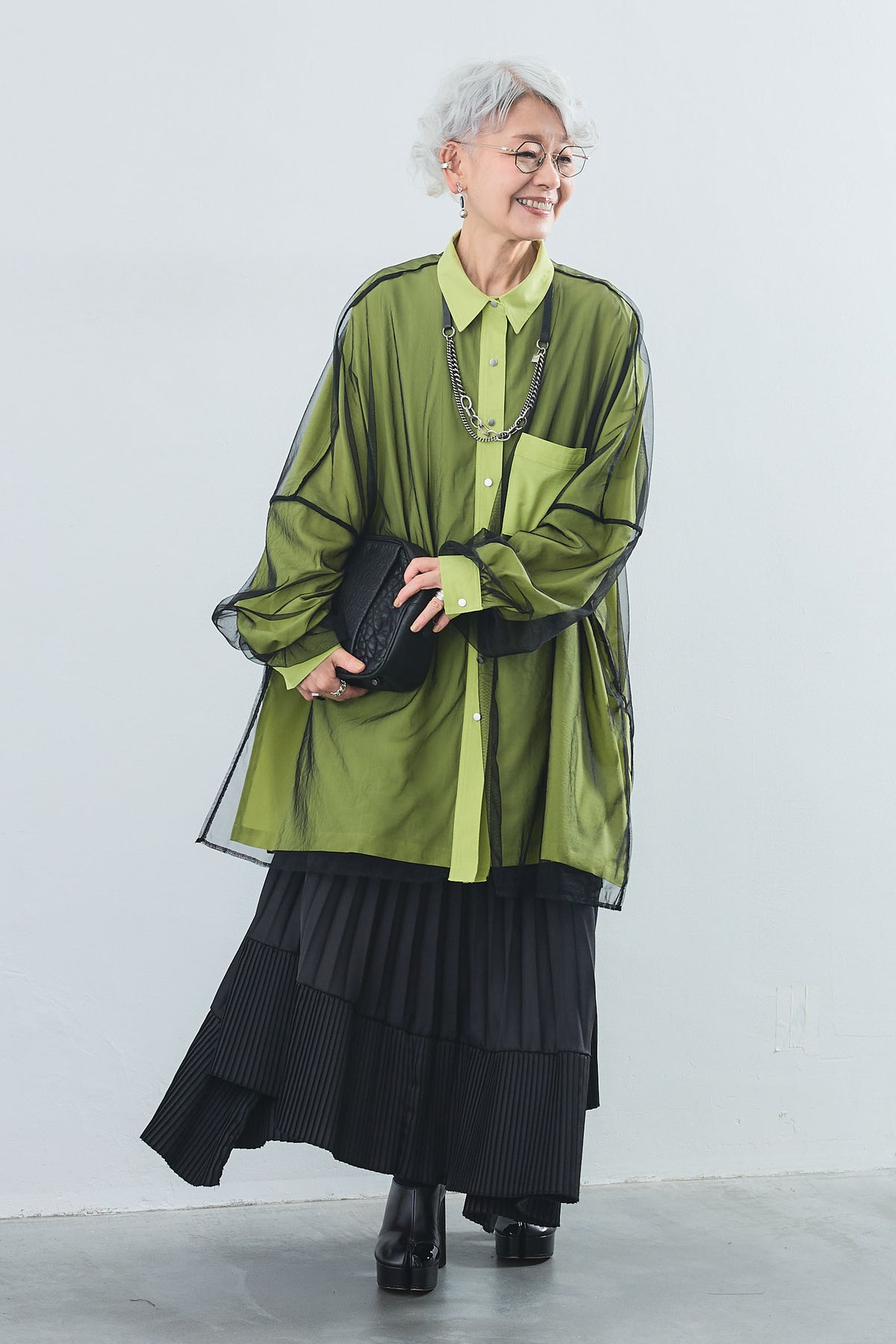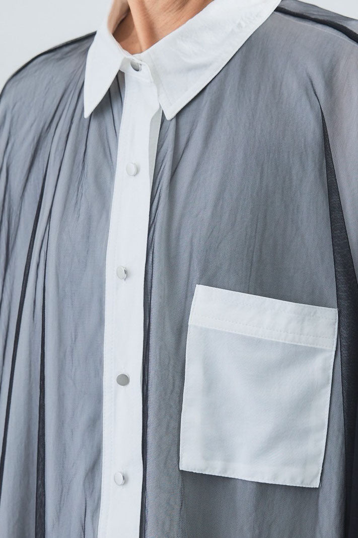 オーバーチュールレイヤードロングシャツは、シンプルながらもユニークなデザインが特徴の一着です。通常のシャツに、オーバーチュールのレイヤードを加えることで、軽やかさとボリューム感を演出し、シンプルなコーディネートに動きと奥行きを加えます。前面のシャツ部分はクラシックでありながら、チュールの透明感が加わることで現代的な印象に。リラックス感とモダンさを兼ね備えたアイテムで、カジュアルから少しドレッシーなスタイルまで幅広く活躍します。シンプルながらも個性を主張したい時にぴったりなアイテムです。