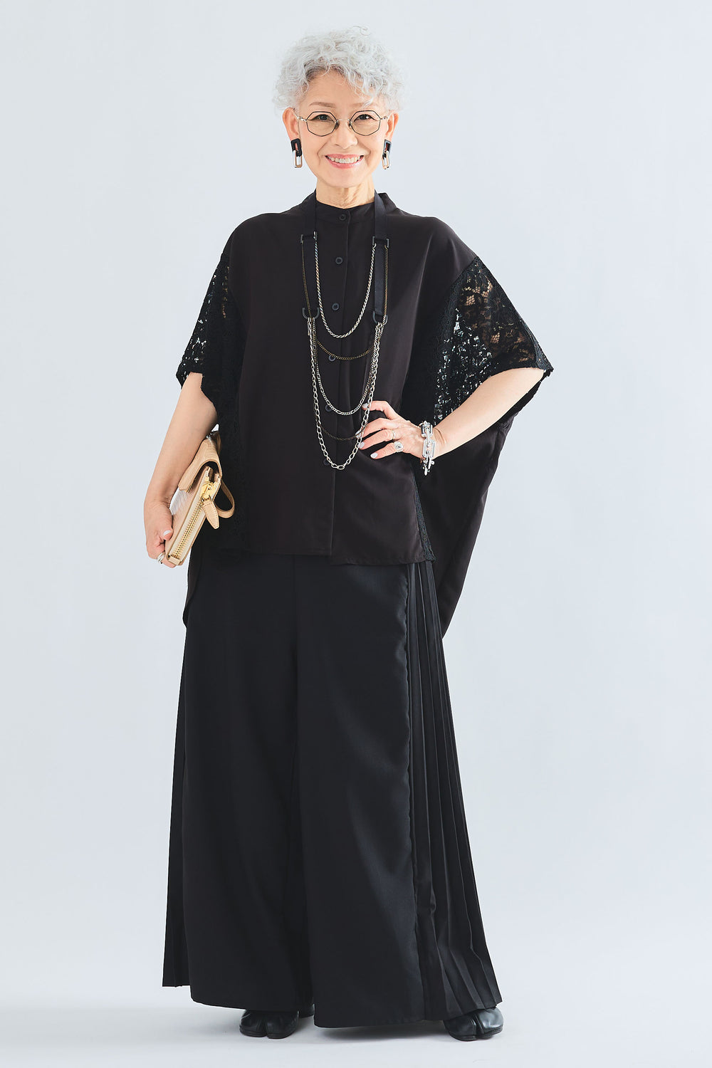 【予約】レースラインコットンフレンチスリーブシャツワンピース