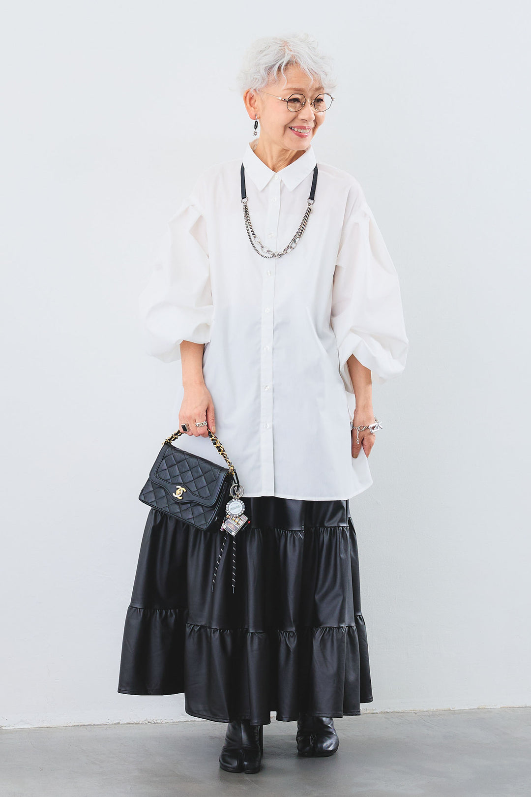 【即納】ブロード×オーガンジーレイヤードパフスリーブシャツワンピース