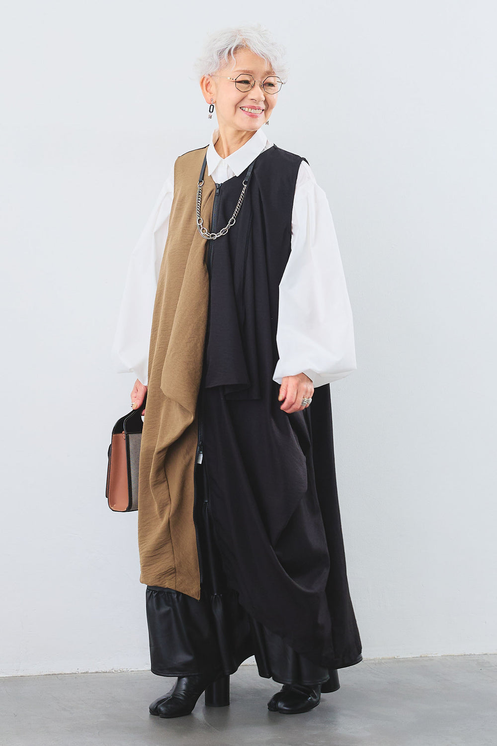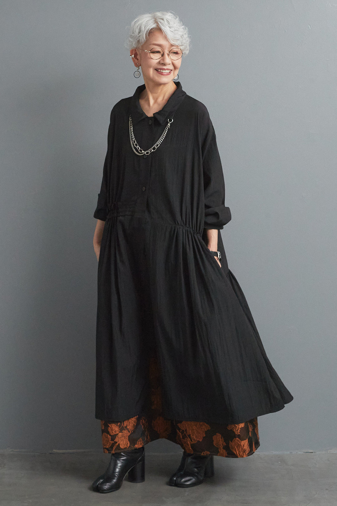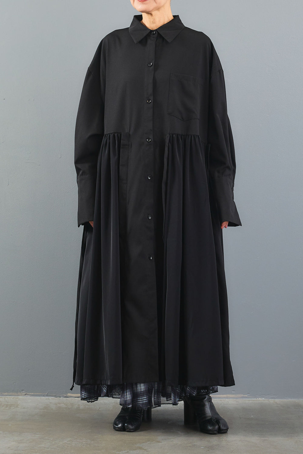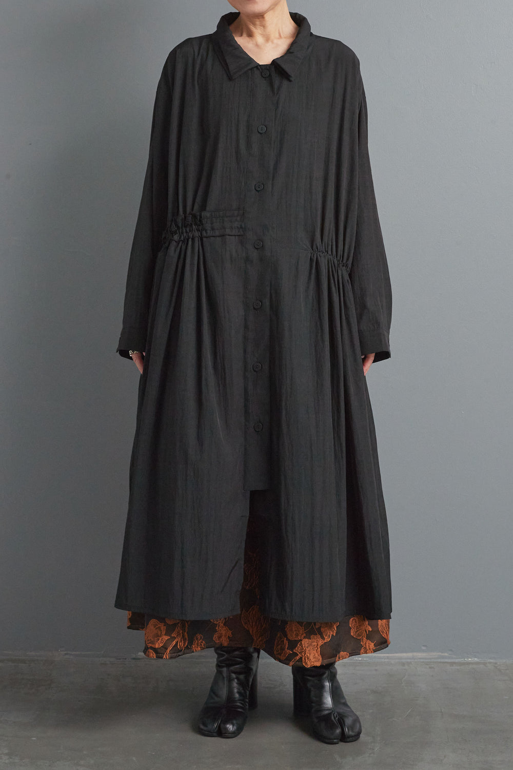 【予約】ダブルカラーアシメギャザーシャツワンピース