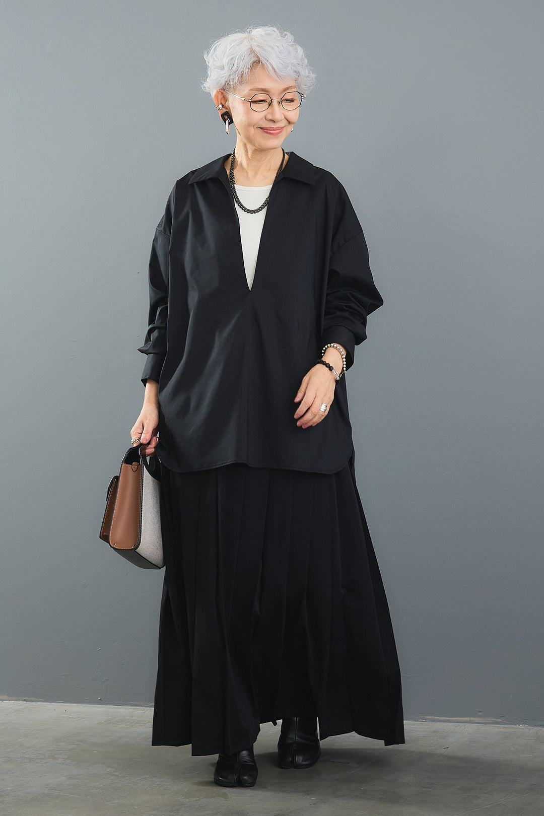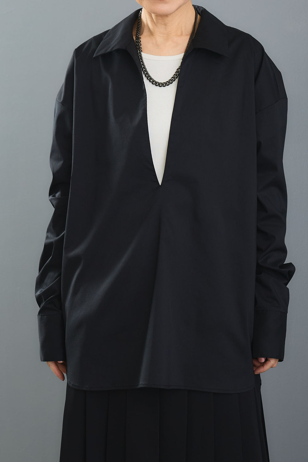 【予約】Vネックカラーアシンメトリーチュニックシャツ