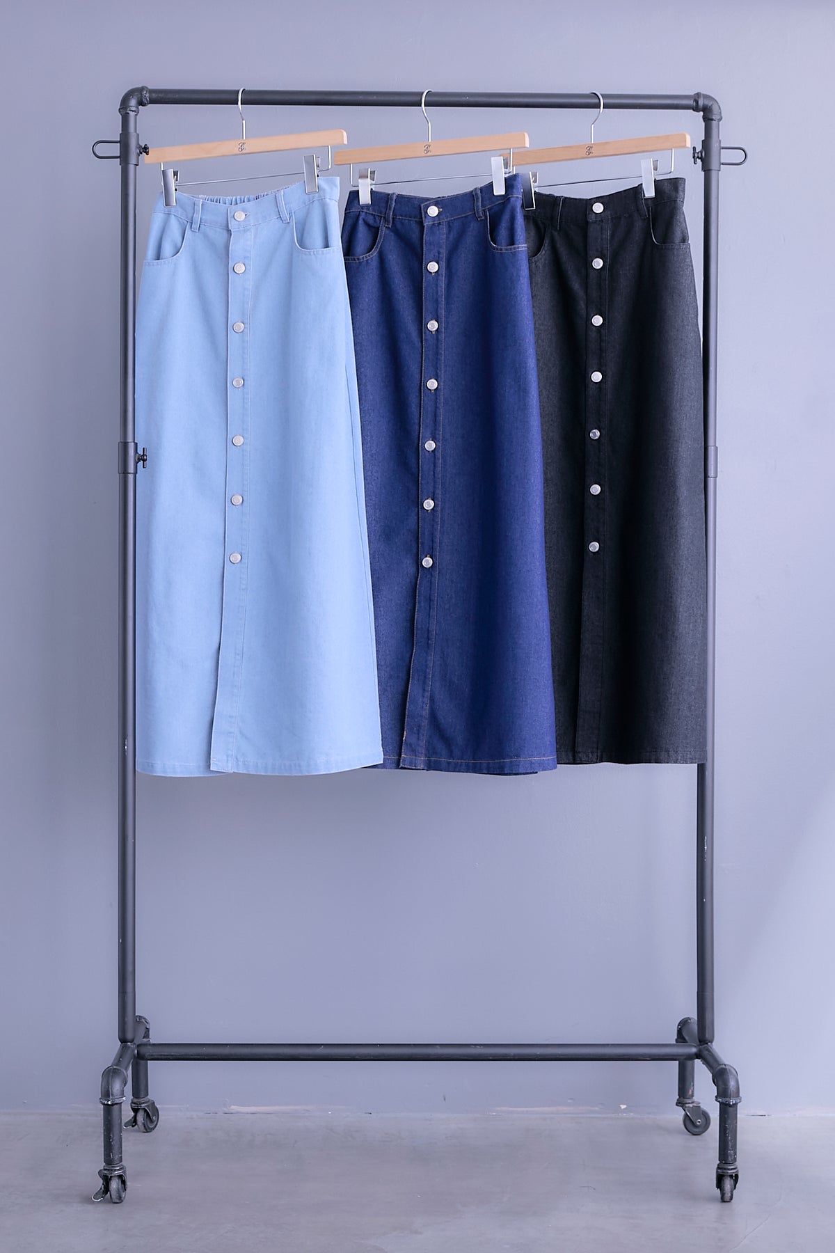 【予約】デニムボタンロングスカート【セットアップ可能】