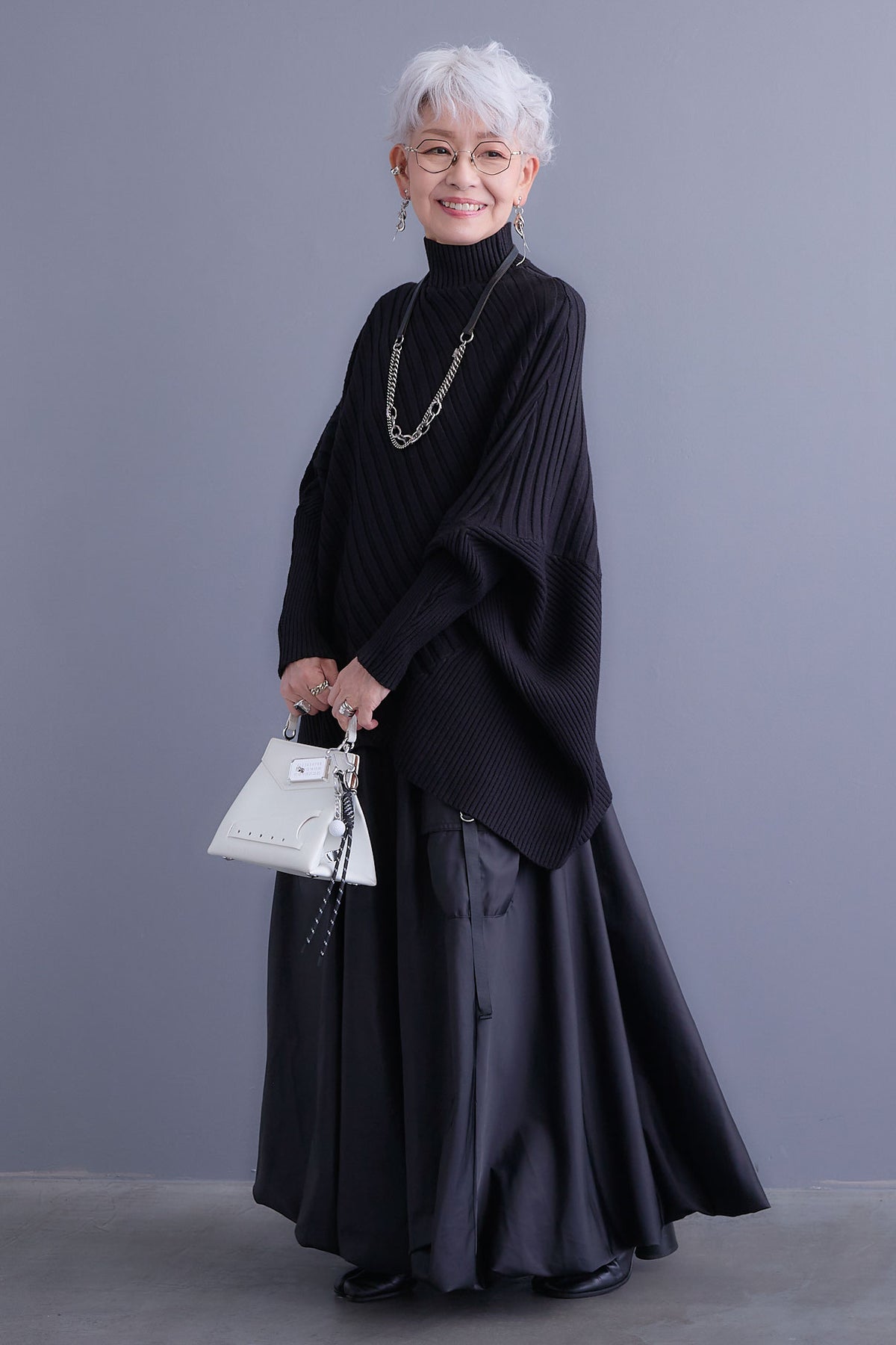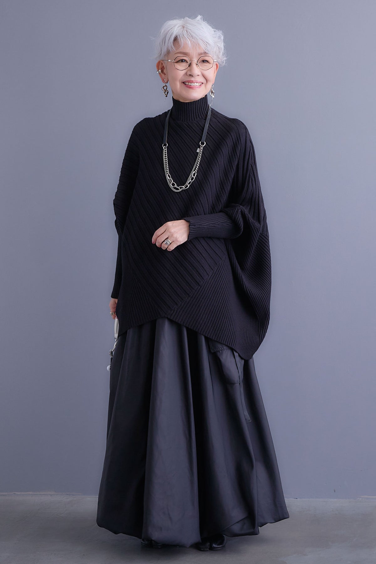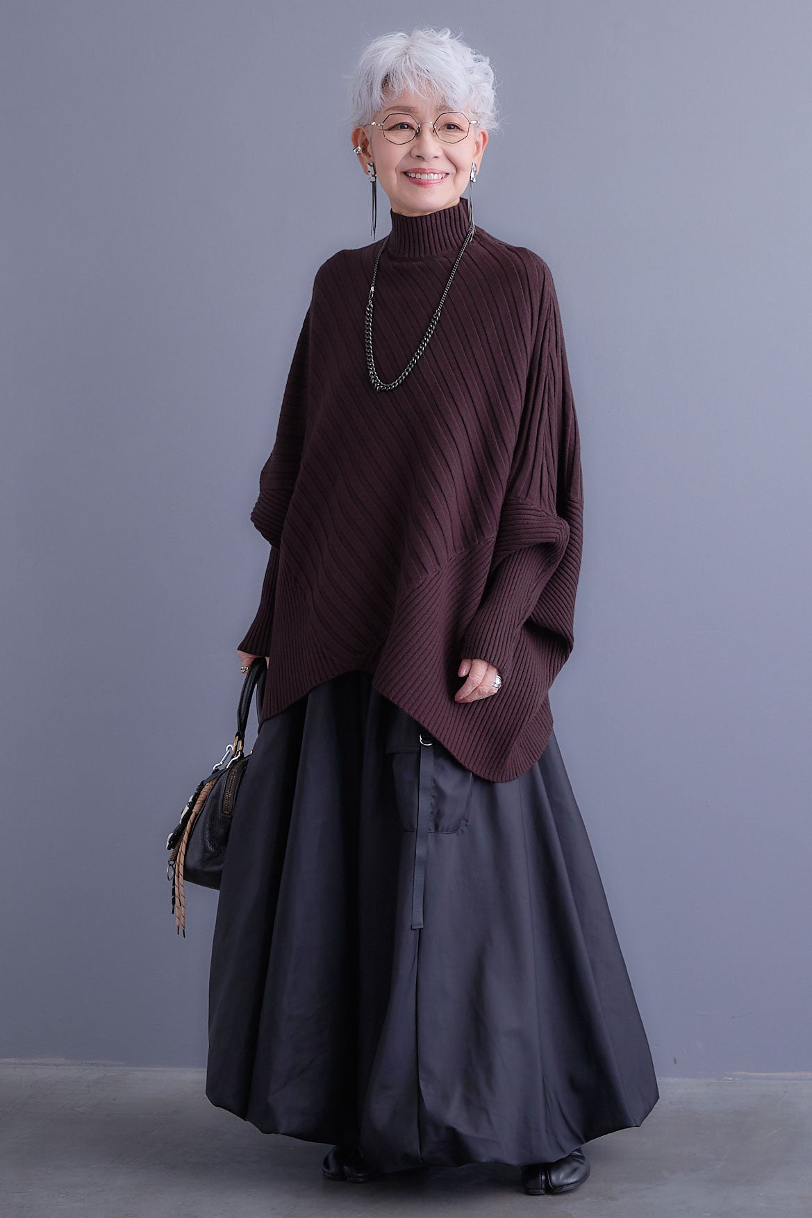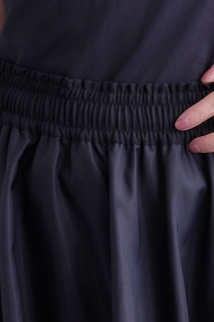 ミリタリー要素を取り入れたカーゴポケット付きのバルーンシルエットスカートです。たっぷりとしたギャザーとボリュームのある立体的なフォルムが特徴で、ウエストはゴム仕様のため、快適な着用感です。ほどよい光沢感のある生地が女性らしさもプラスし、カジュアルにもモードにも合わせやすい一枚です。