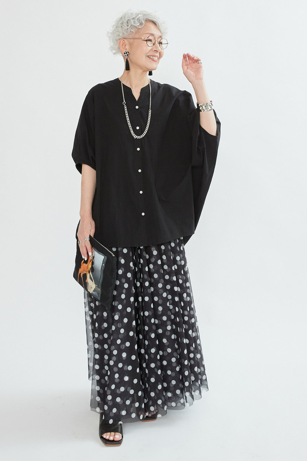 【予約】ボーダー×ドット オーバーチュニックブラウス