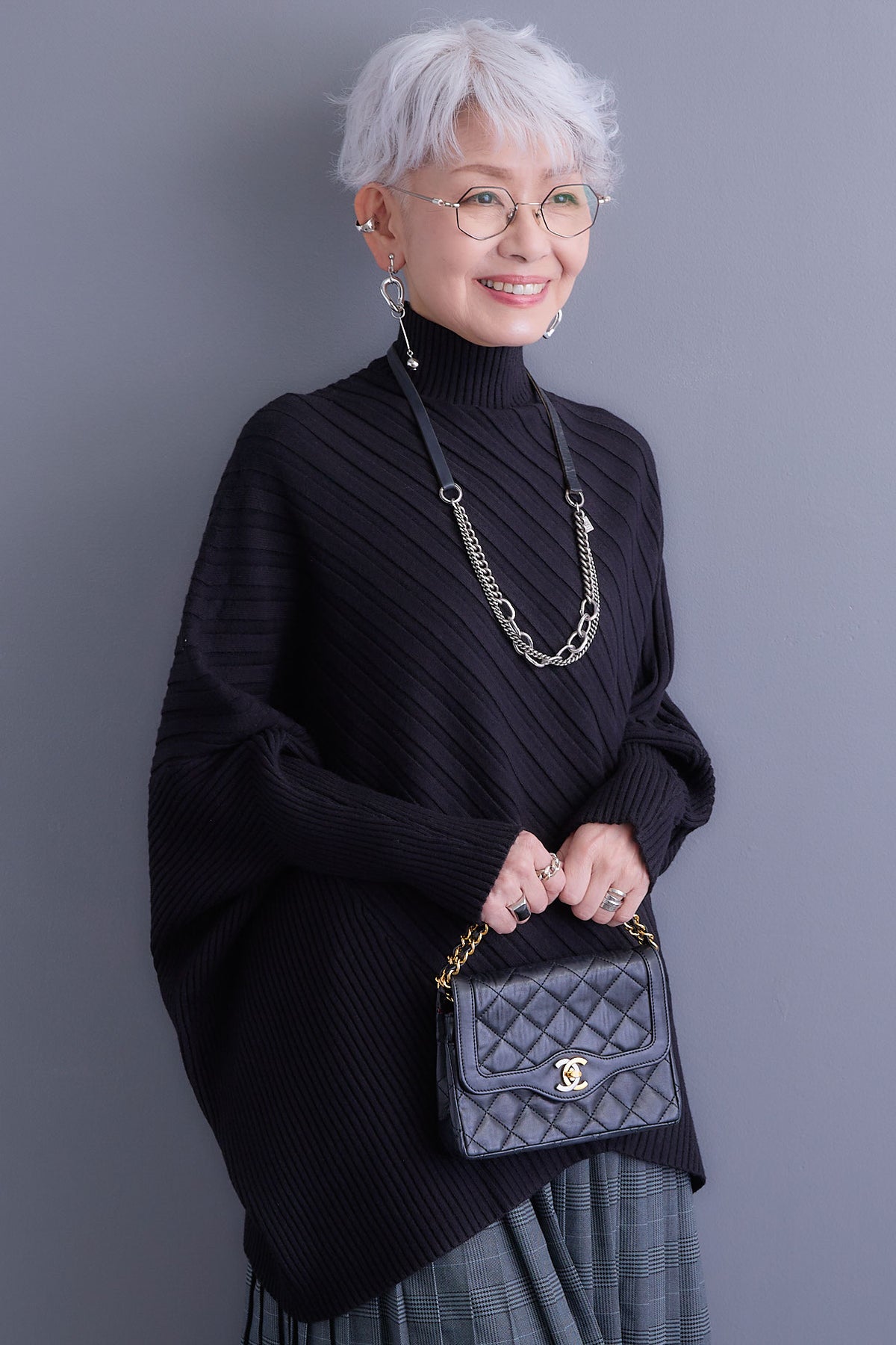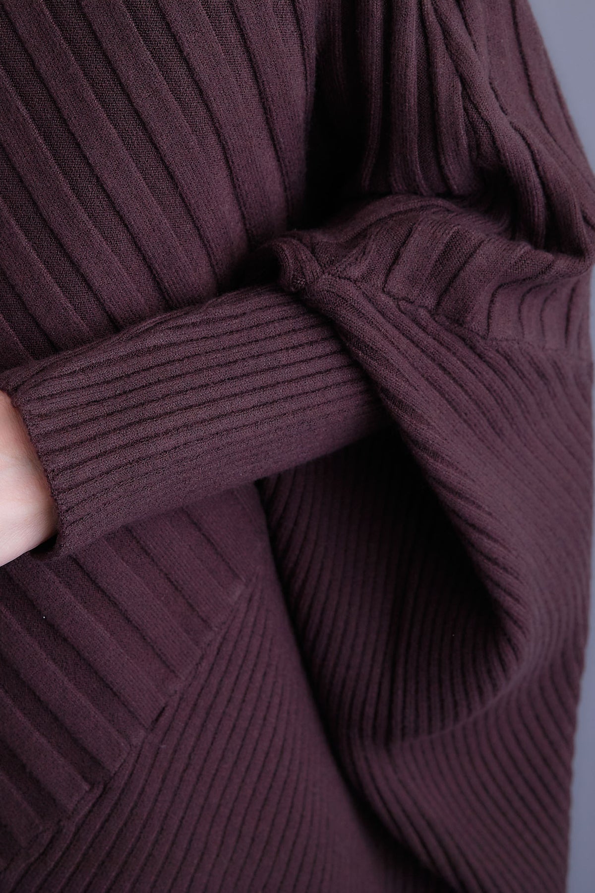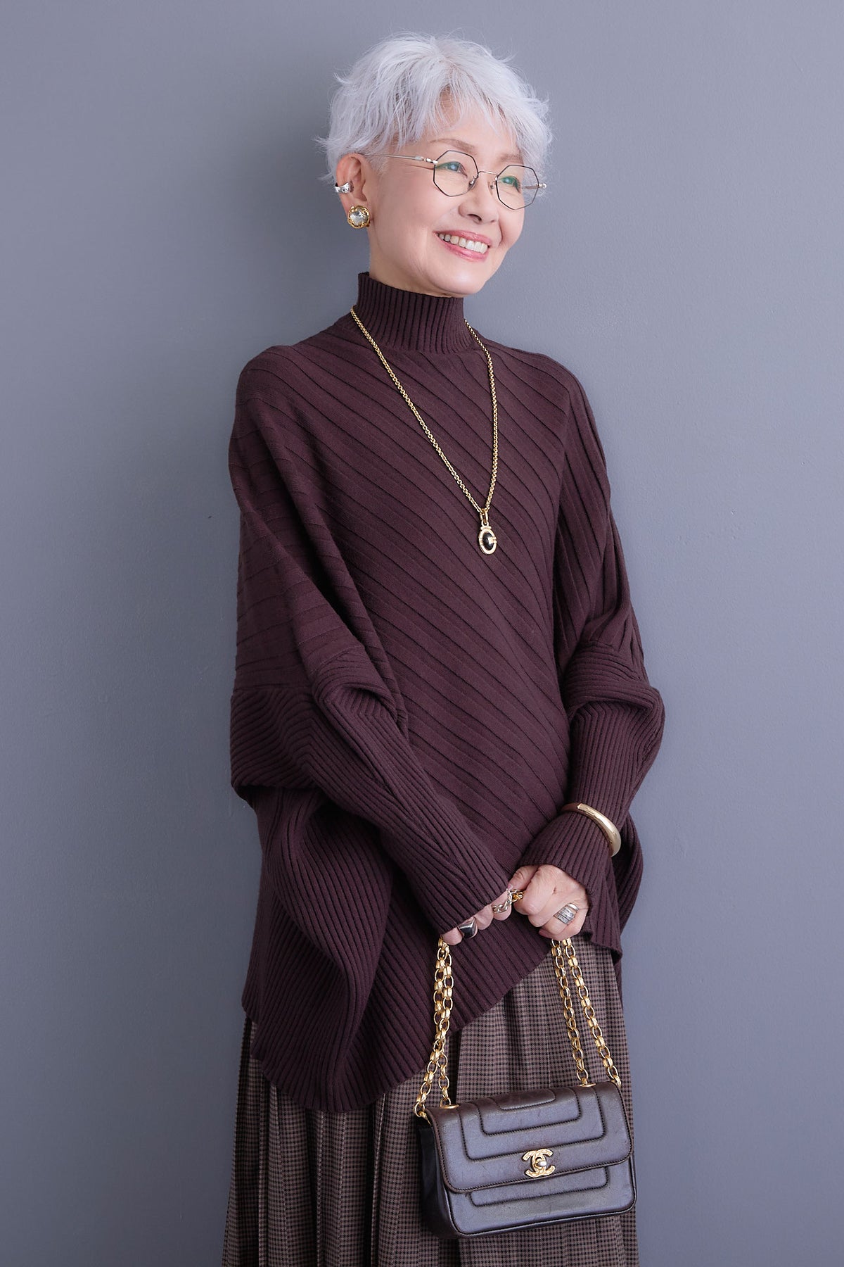 斜めのリブ編みが印象的なアシンメトリーデザインのタートルネックニット。ボリュームのあるドルマンスリーブとゆったりしたシルエットで、体型を拾わず着心地も抜群。裾にかけての変化のあるラインが着こなしにニュアンスを加え、シンプルながらもモード感漂う一枚。