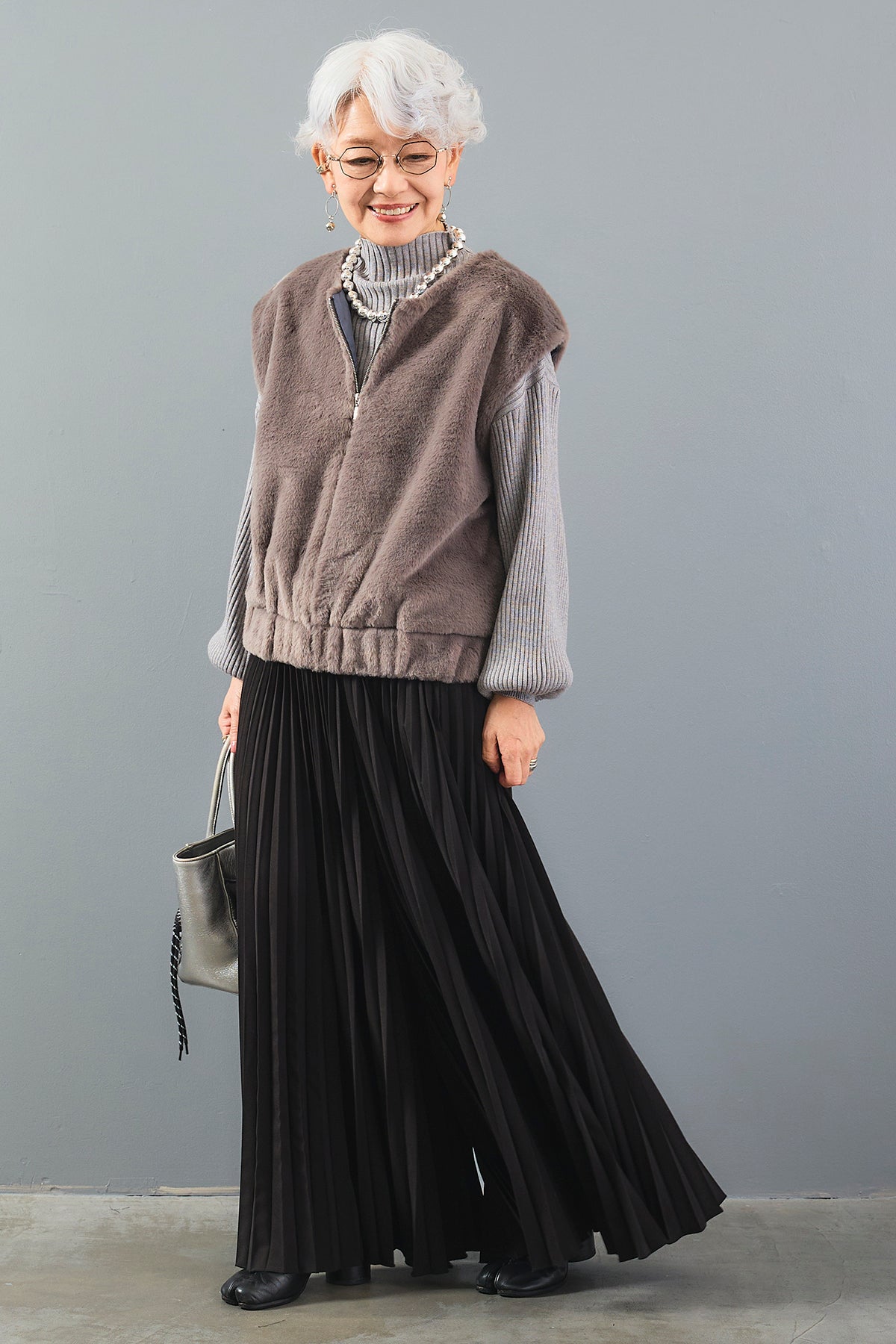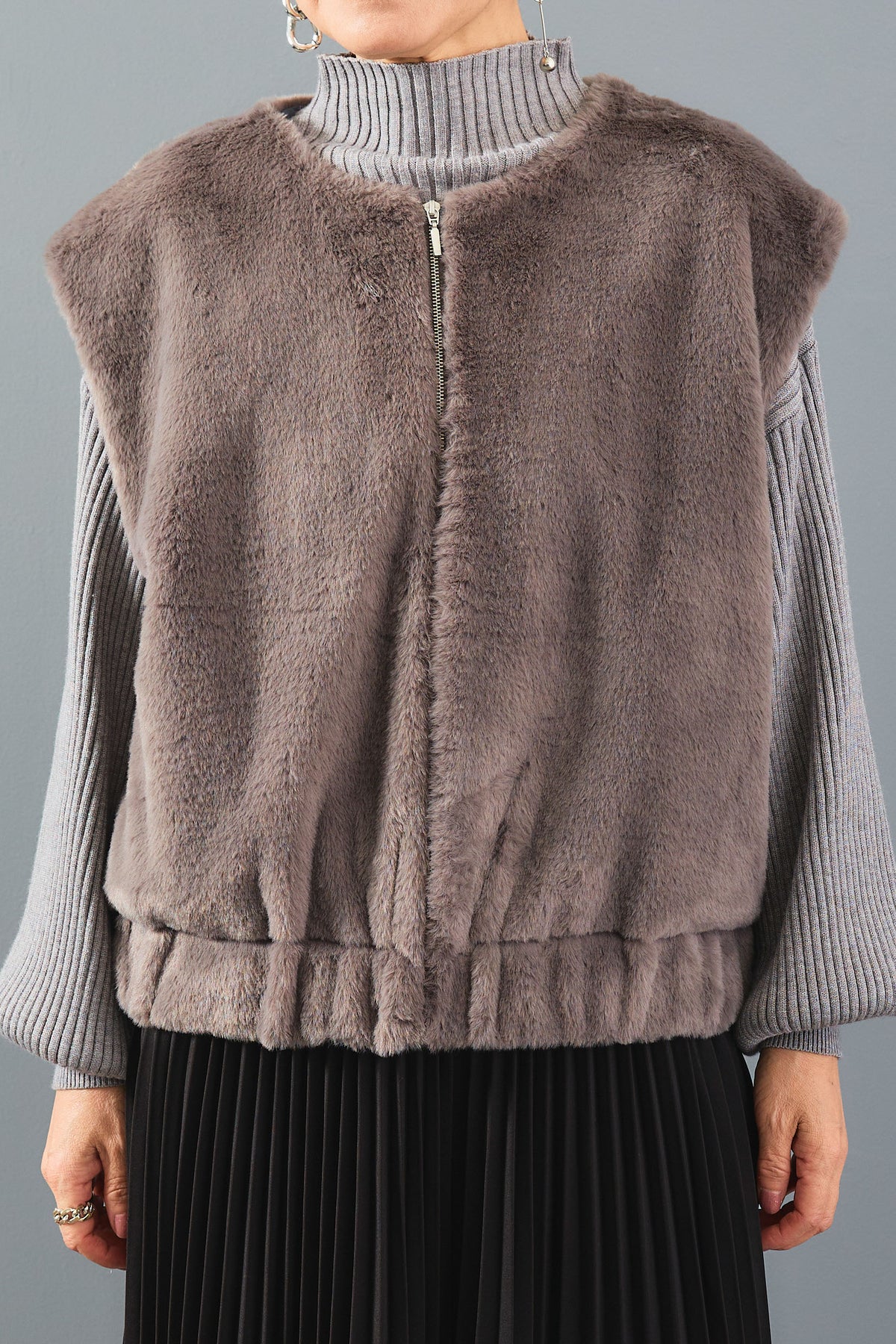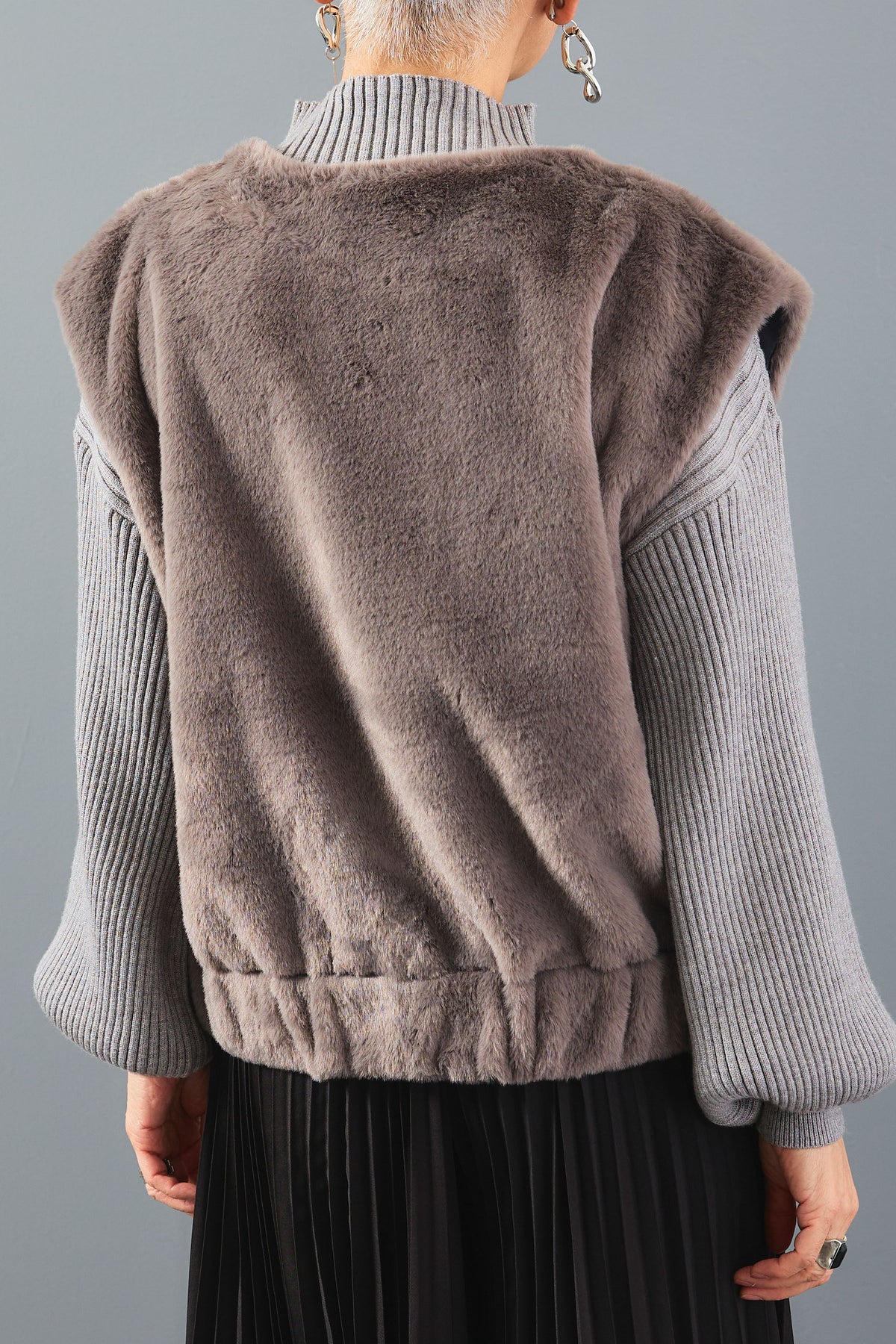 【予約】フレンチスリーブヘムギャザーエコファーベストを含んだコーデセット商品を探す↓