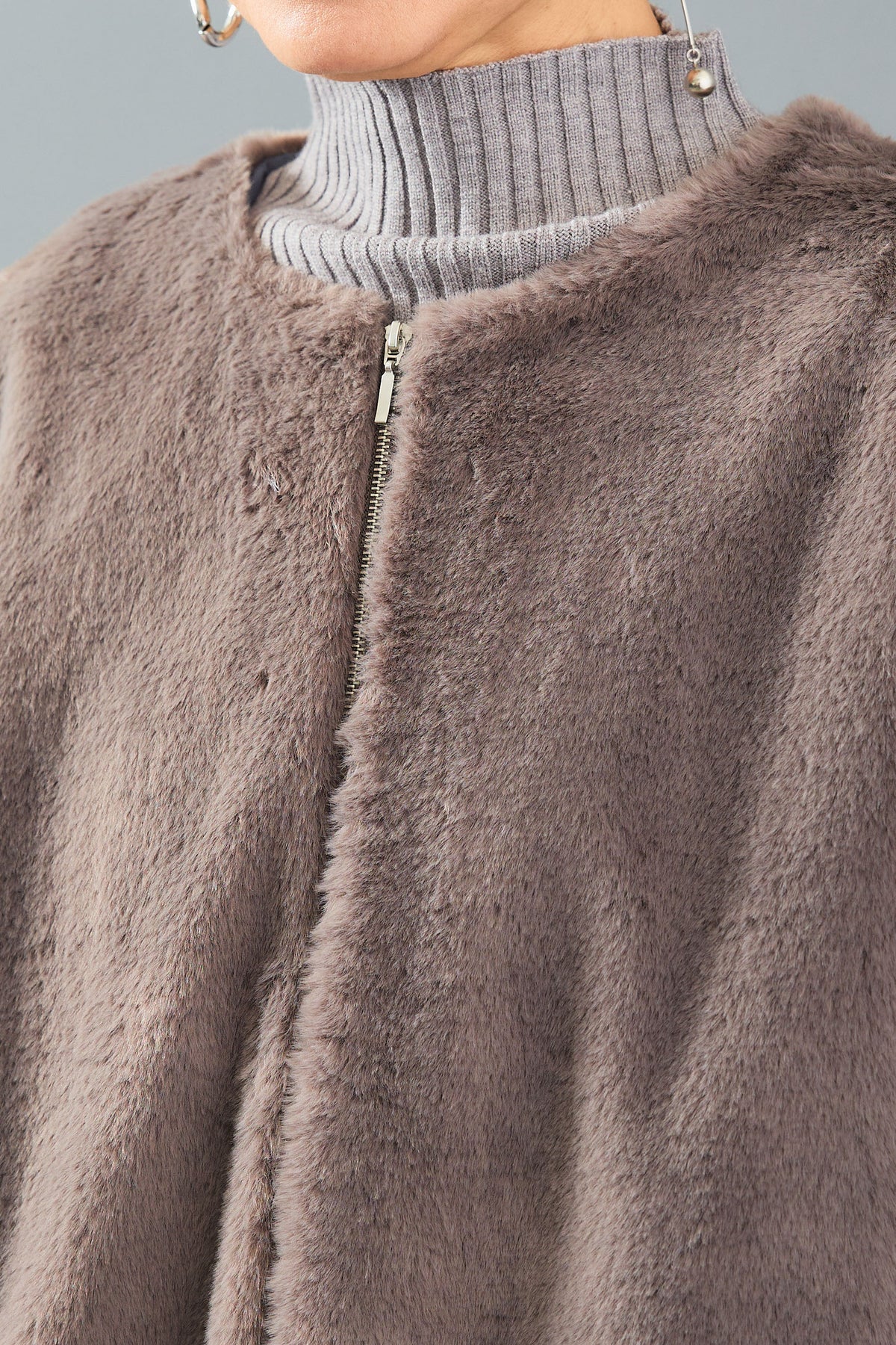 ふんわりとしたエコファー素材が魅力のフレンチスリーブベスト。裾にギャザーを寄せることで丸みのあるフォルムを生み出し、柔らかな印象に仕上げています。軽く羽織るだけで季節感をプラスでき、ワンピースやニットとのレイヤードにも最適。暖かさとデザイン性を兼ね備えた一枚です。