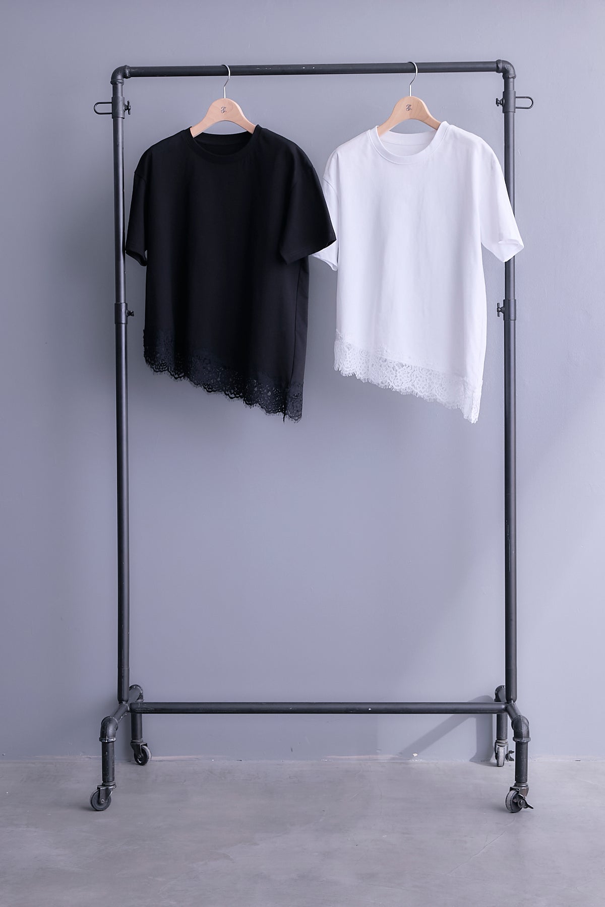 シンプルなTシャツに、アシンメトリーのレースをあしらったデザインが印象的な一枚。裾に広がる繊細なレースが、さりげないニュアンスと奥行きをプラスします。ベースはなめらかなカットソー素材で、着心地は軽やか。レース部分とのコントラストが、カジュアルな中に上品さを添えてくれます。パンツにもスカートにも合わせやすく、重ね着のアクセントとしても活躍。日常のスタイルをほどよくアップデートしてくれるTシャツです。