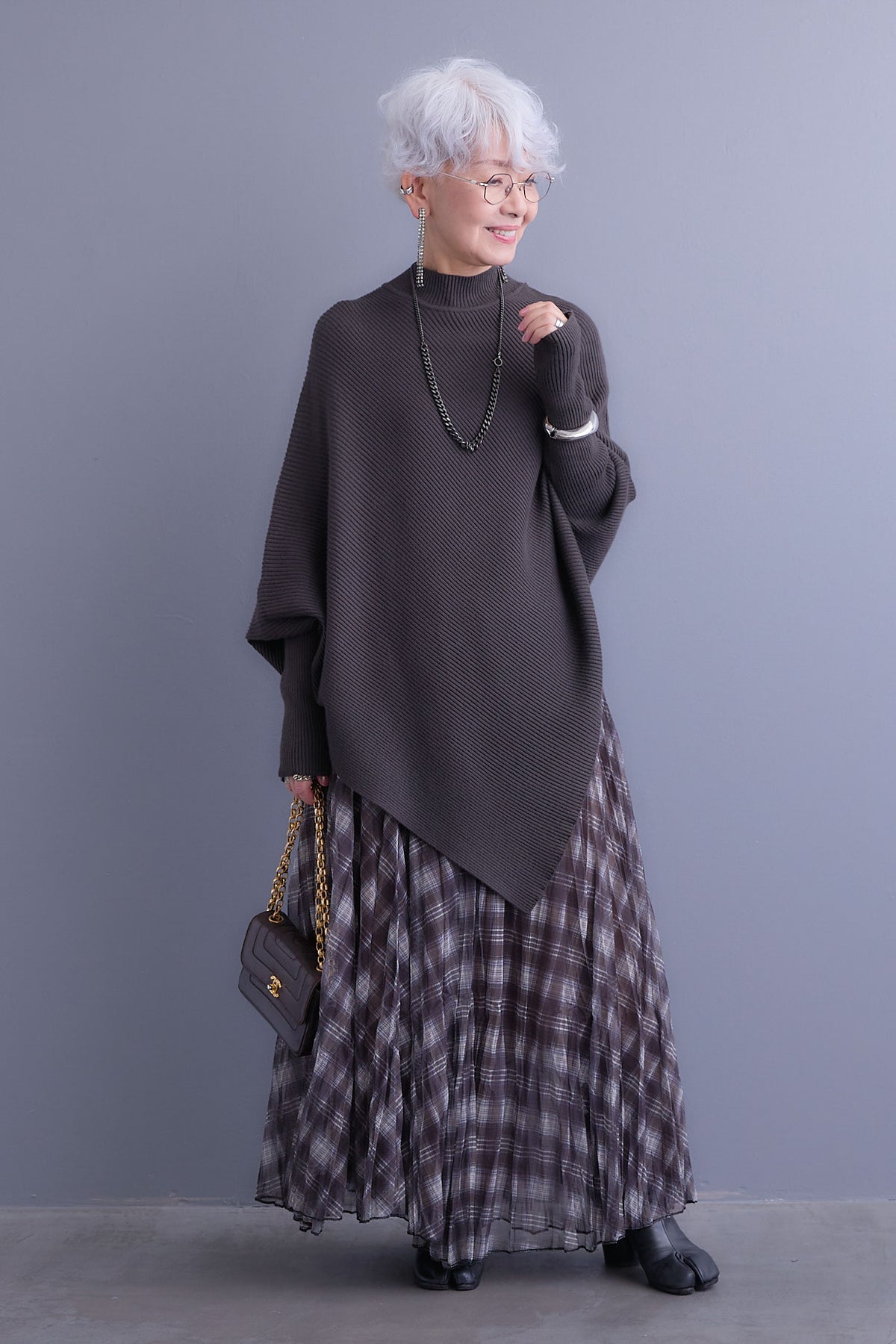 アシンメトリーな裾デザインが印象的なオーバーサイズニット。ゆったりとしたシルエットで体のラインを拾わず、抜け感のあるスタイルを演出します。リブ編みの立体感が上品さをプラスし、シンプルながらもモードな印象に。スカートやワイドパンツと合わせてバランスよく着こなせる万能な一枚です。