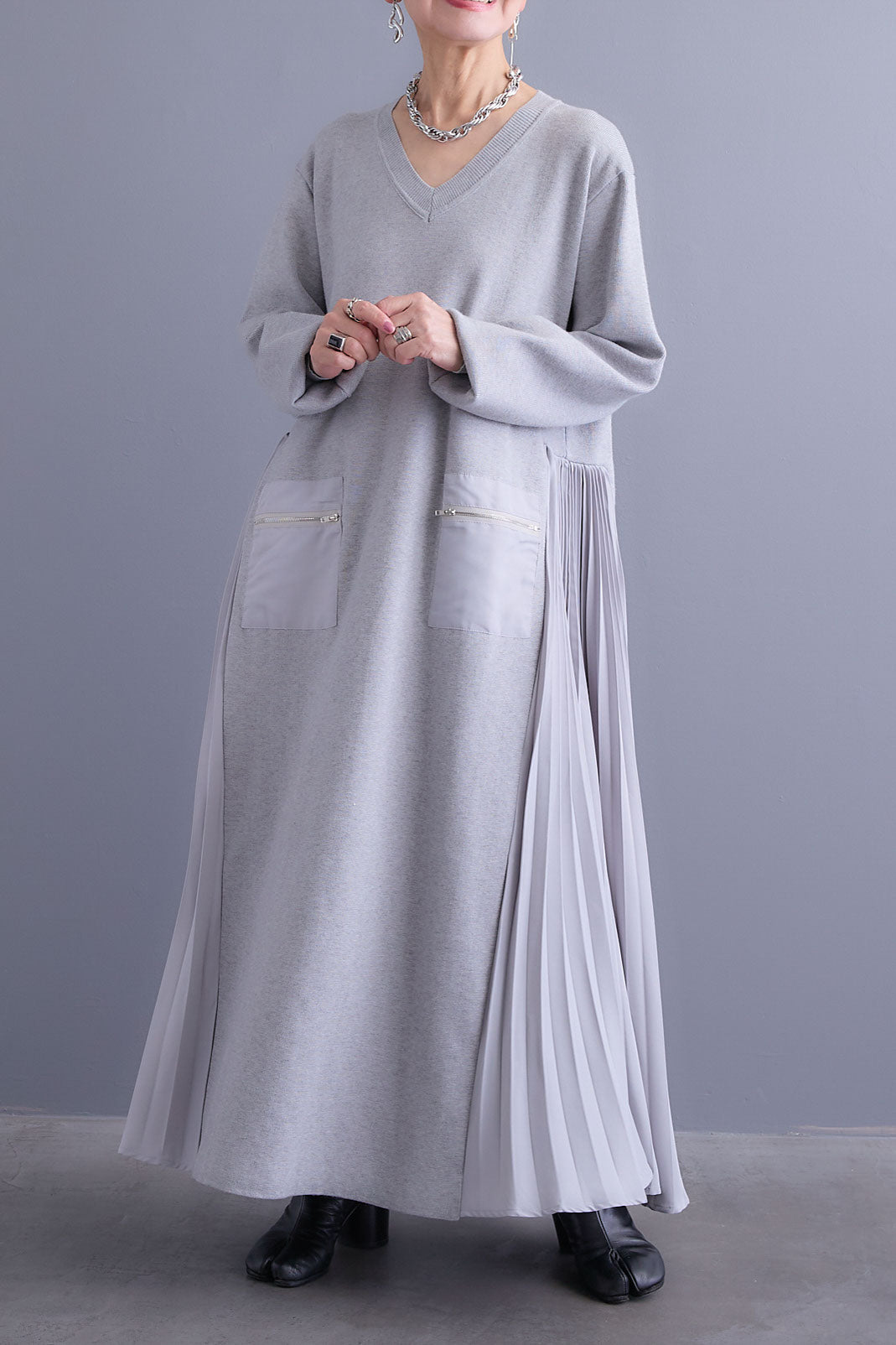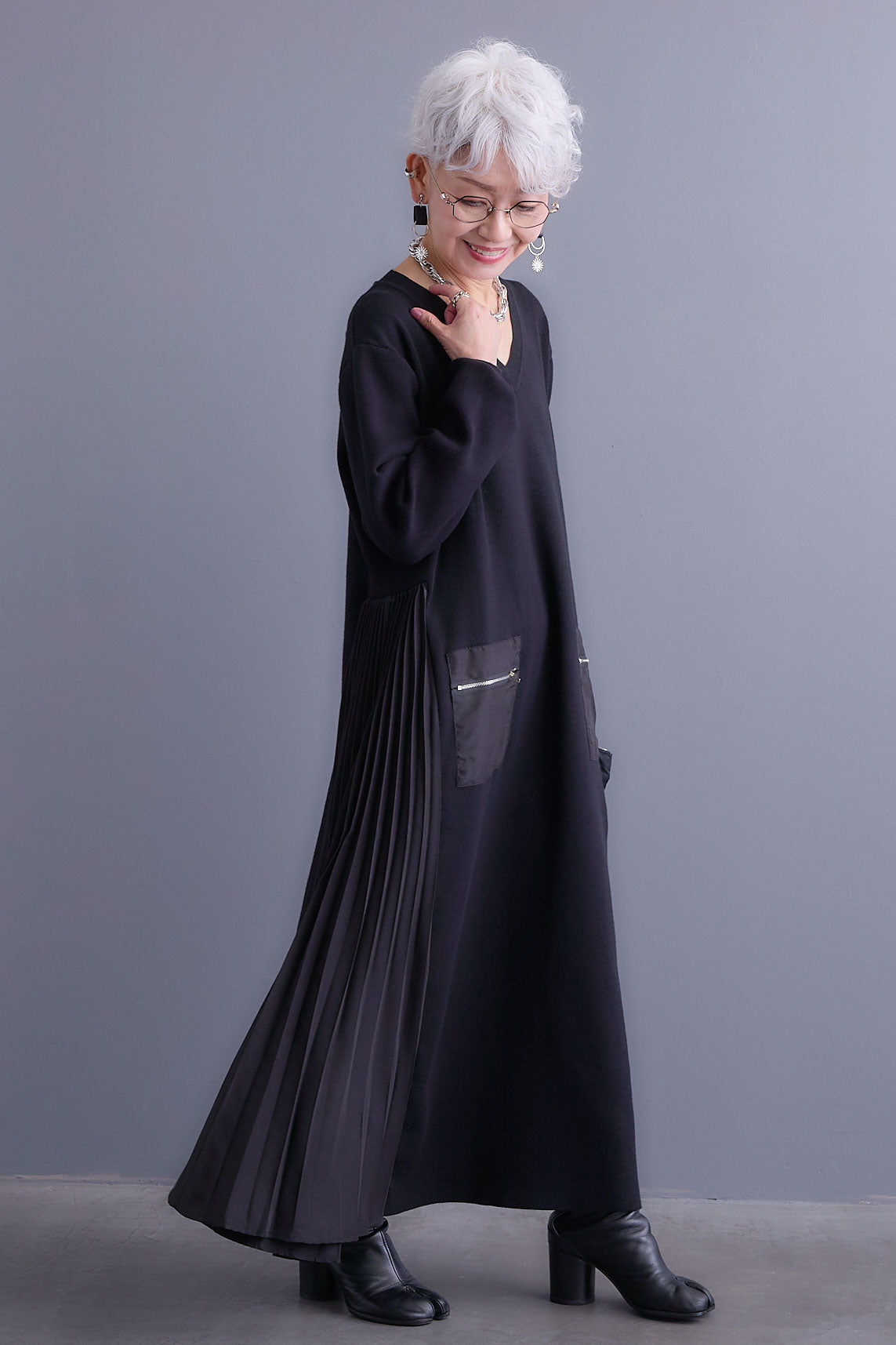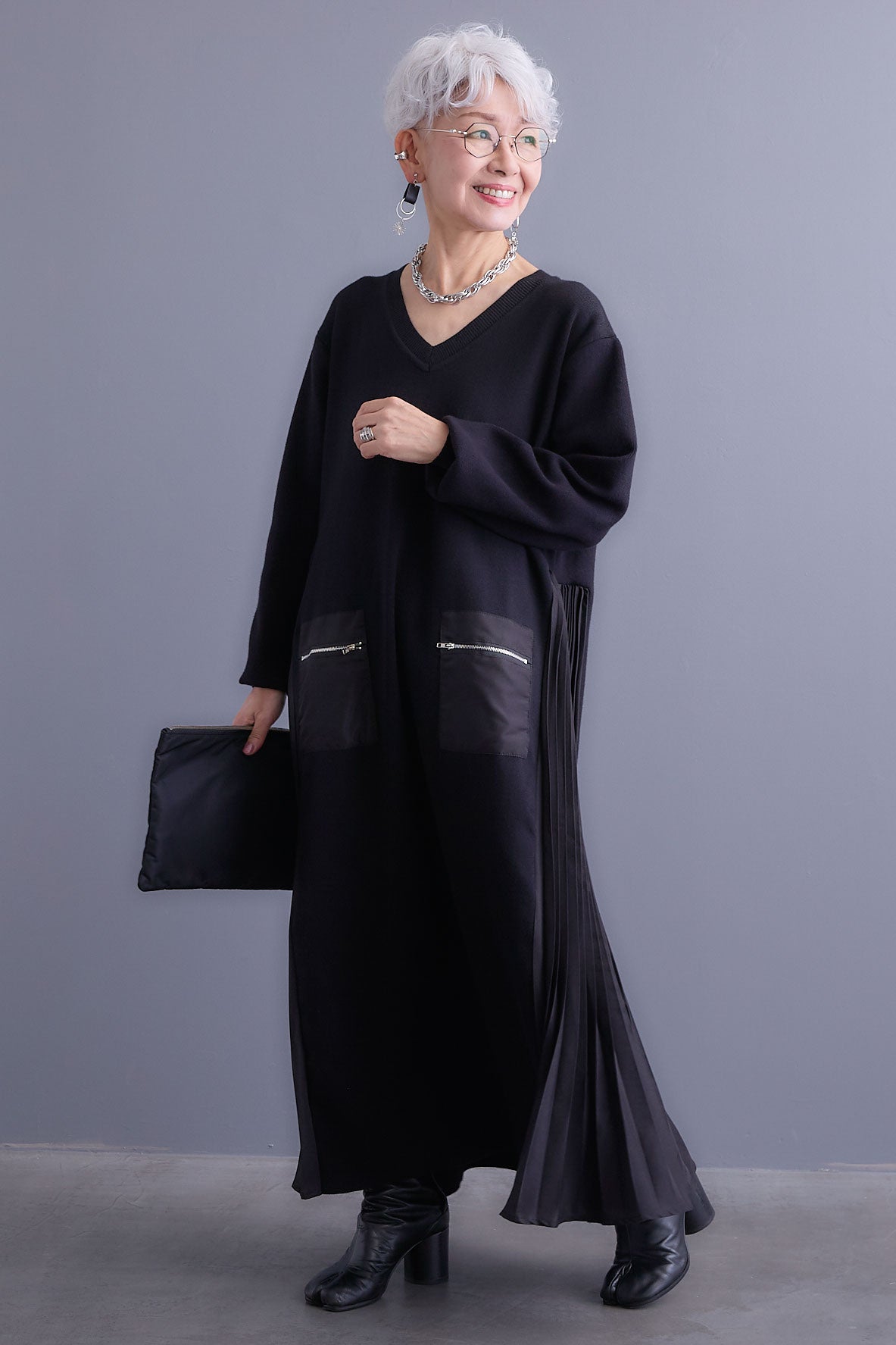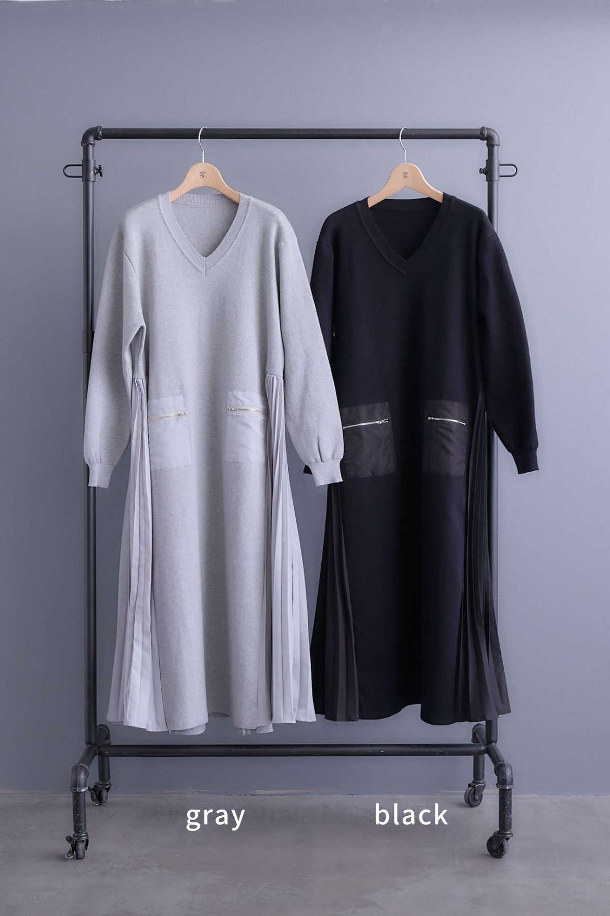 【予約】ZIPポケットサイドプリーツニットワンピース