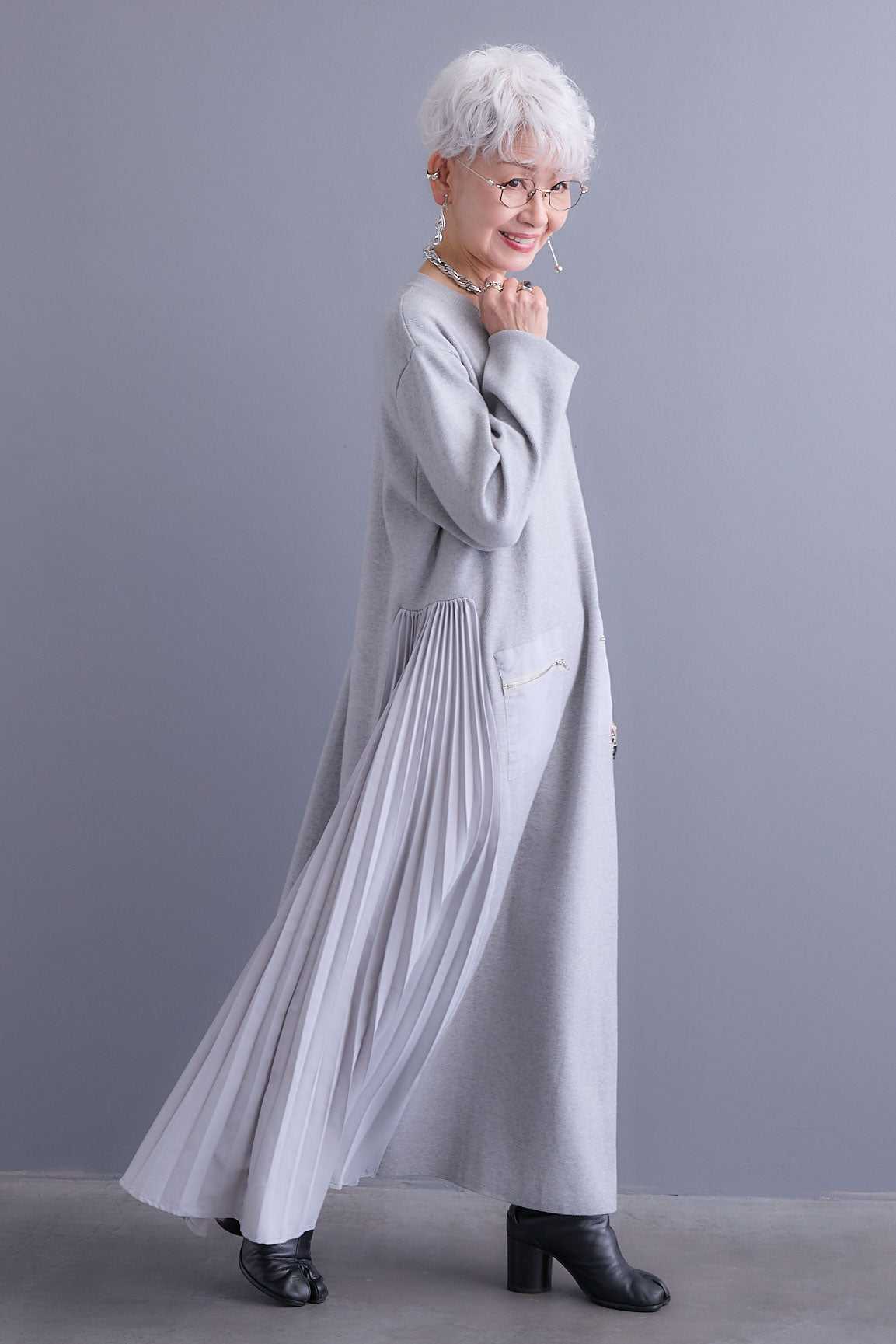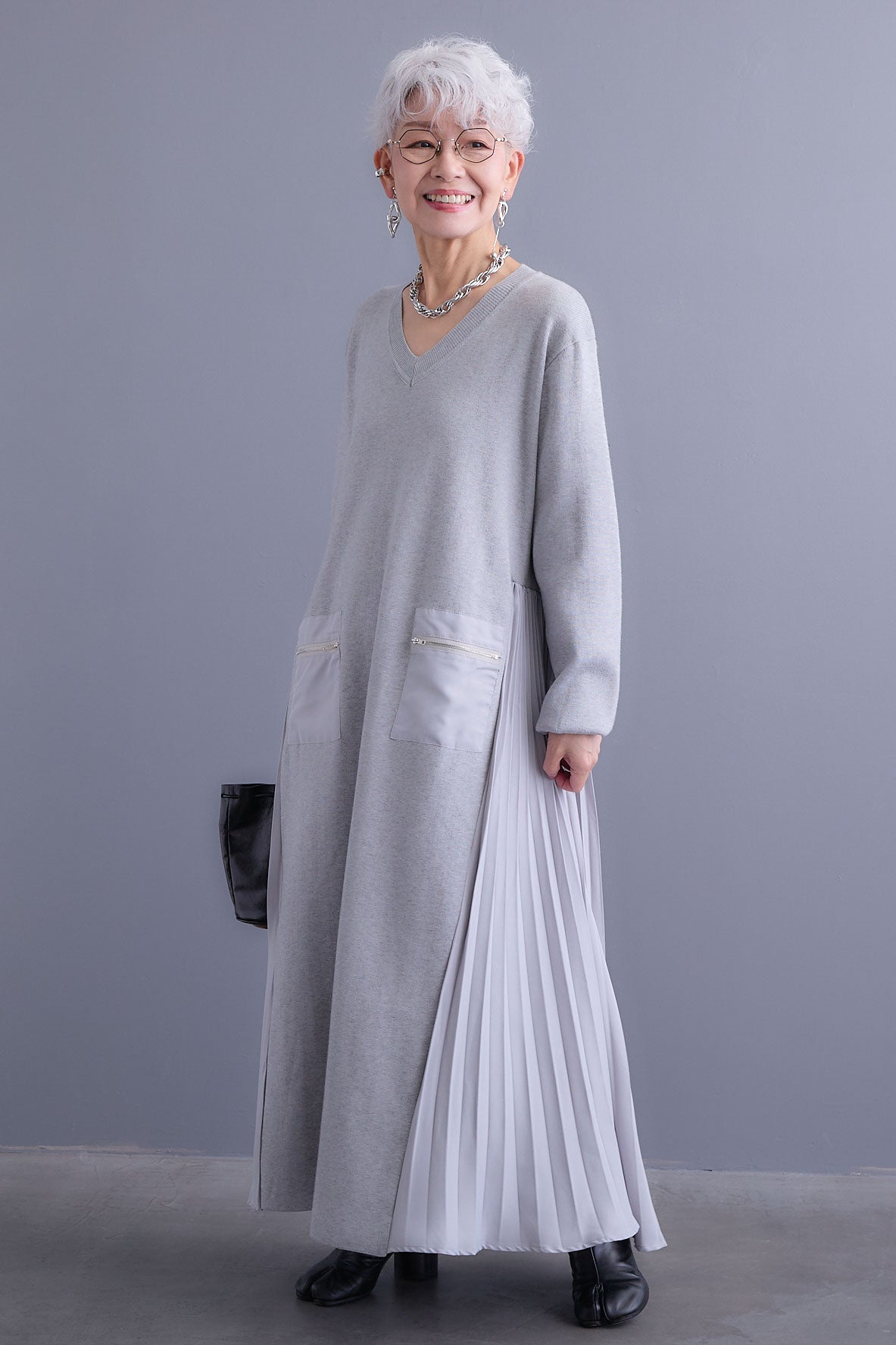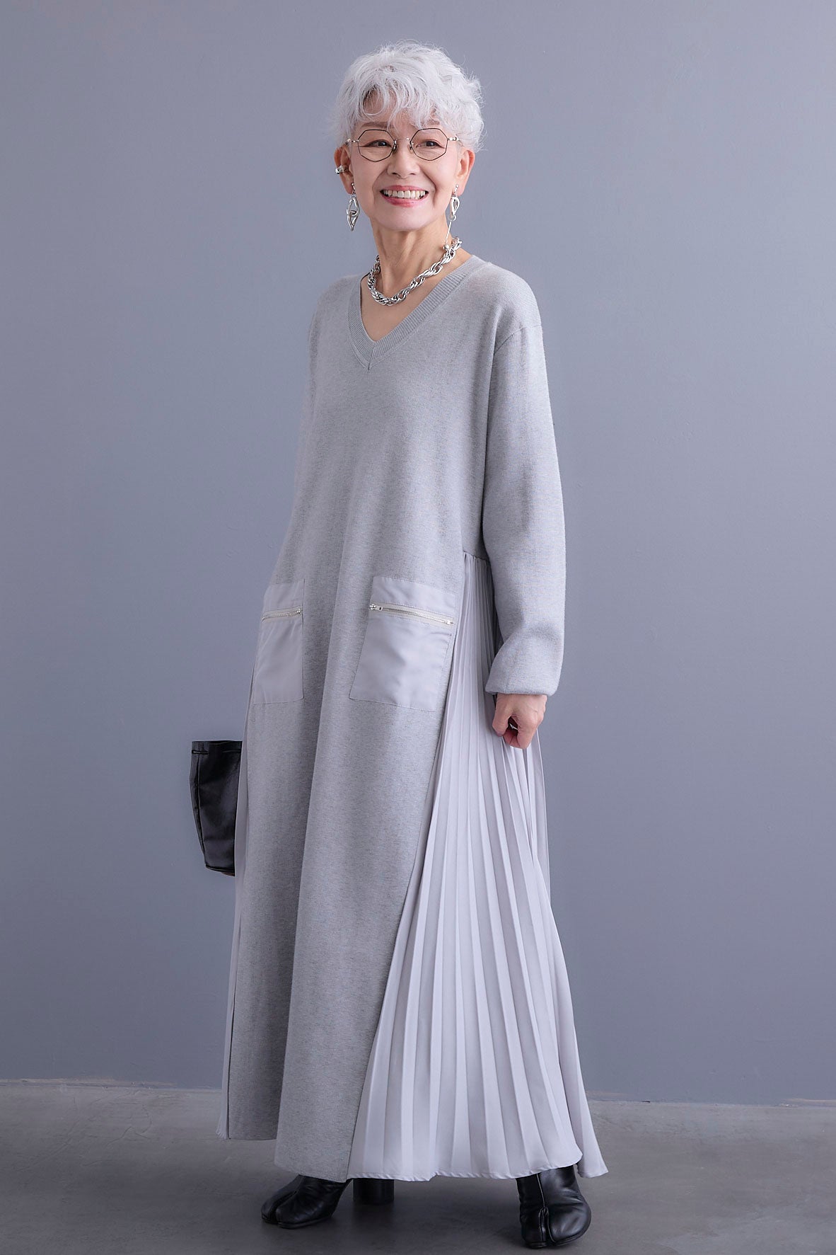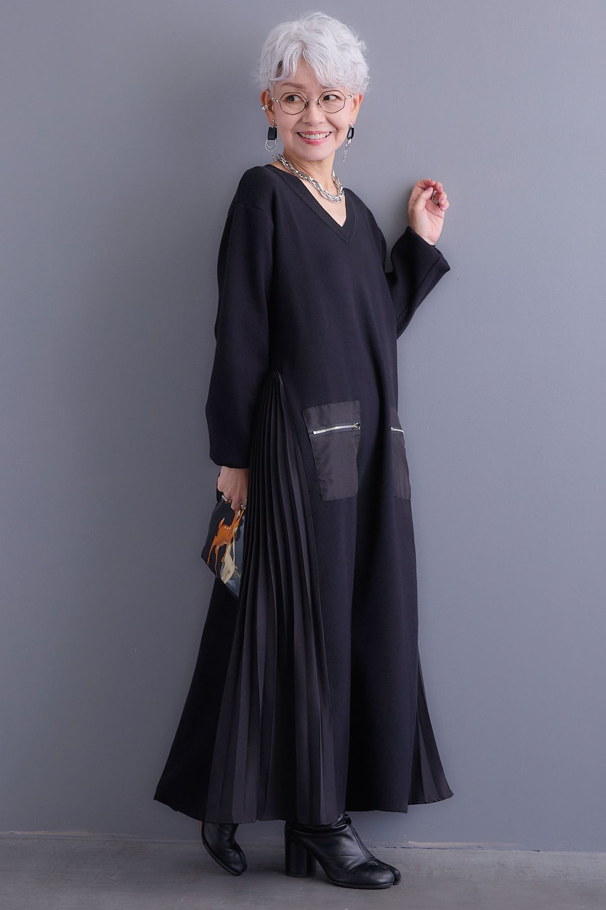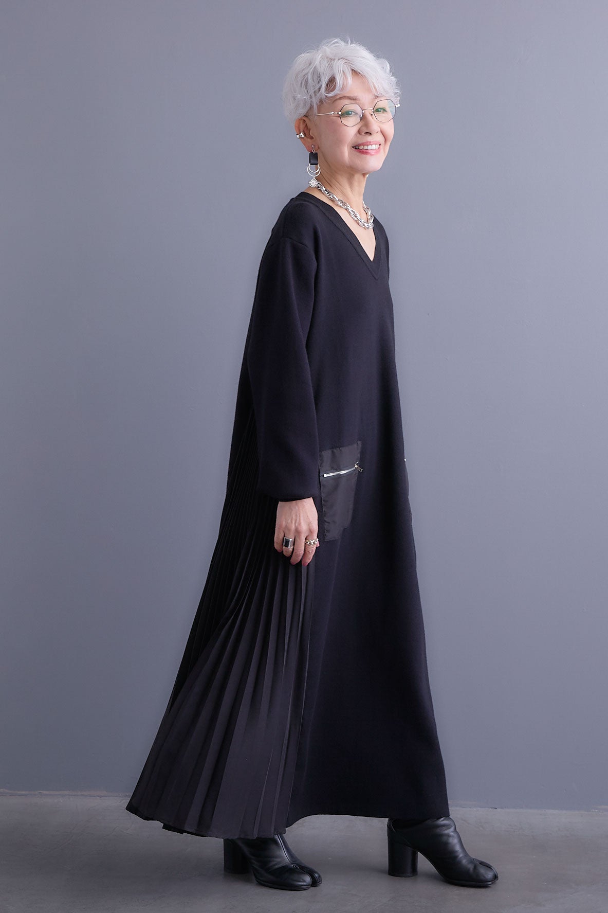 【予約】ZIPポケットサイドプリーツニットワンピース