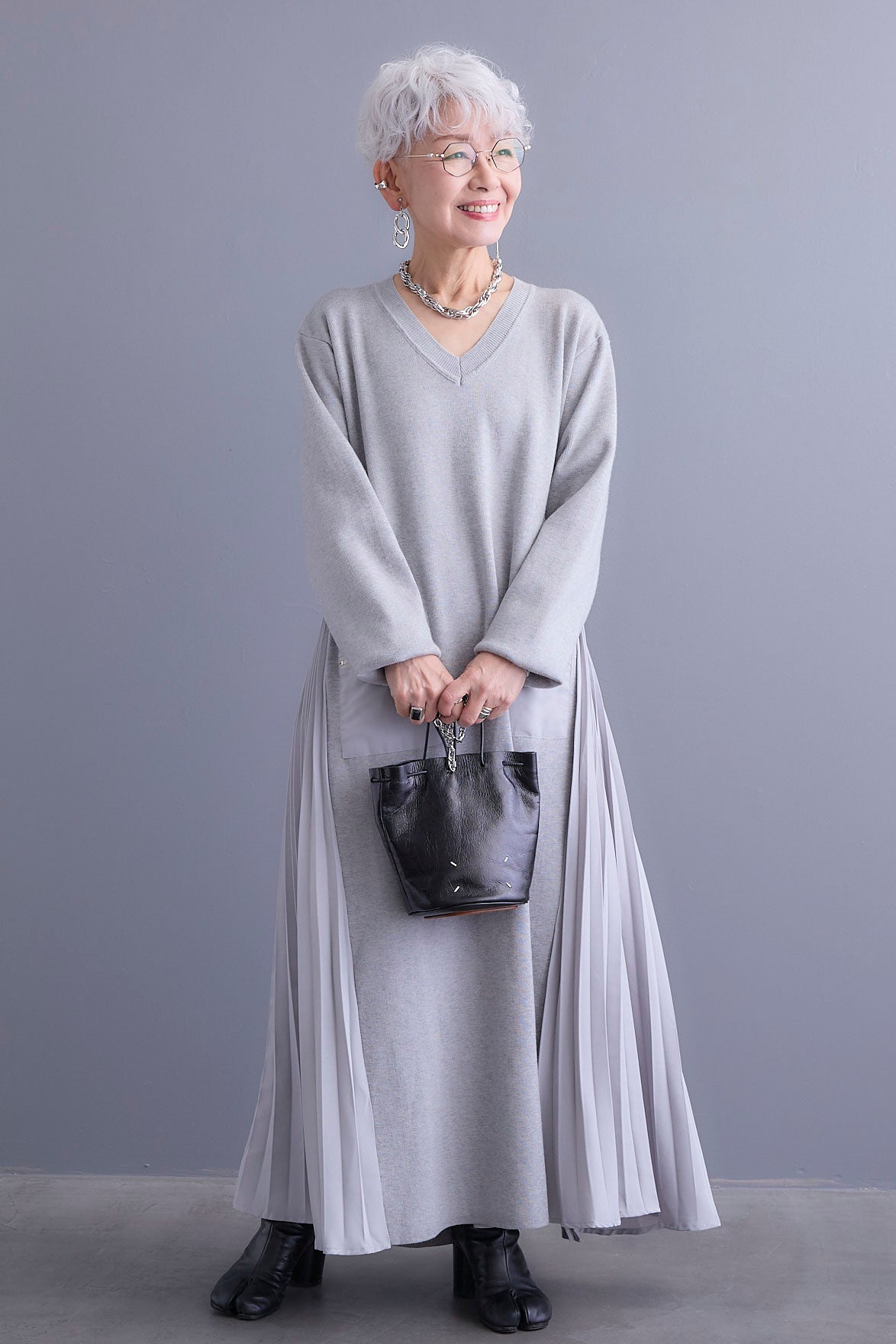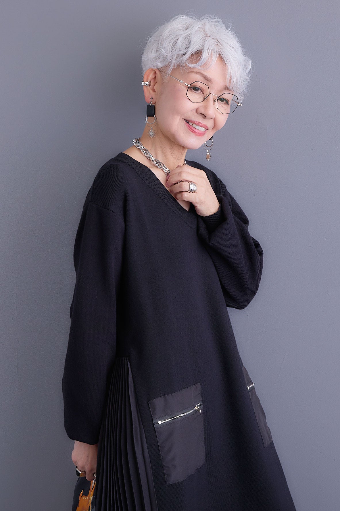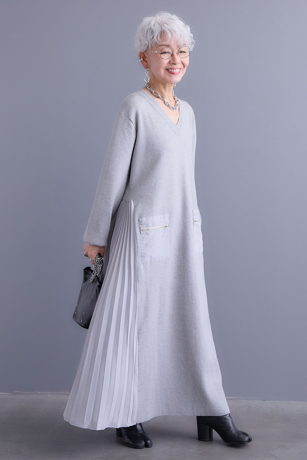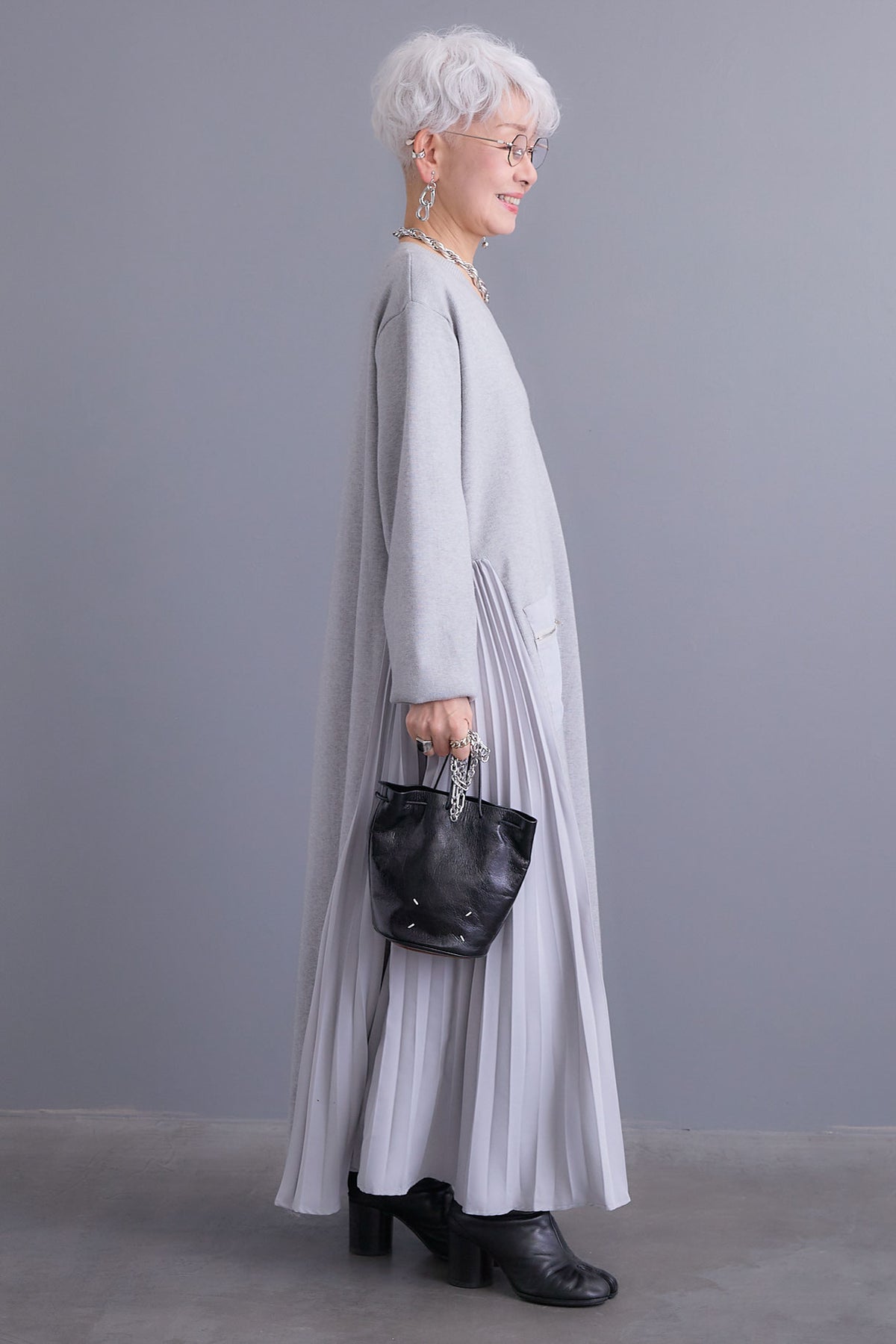 【予約】ZIPポケットサイドプリーツニットワンピースを含んだコーデセット商品を探す↓