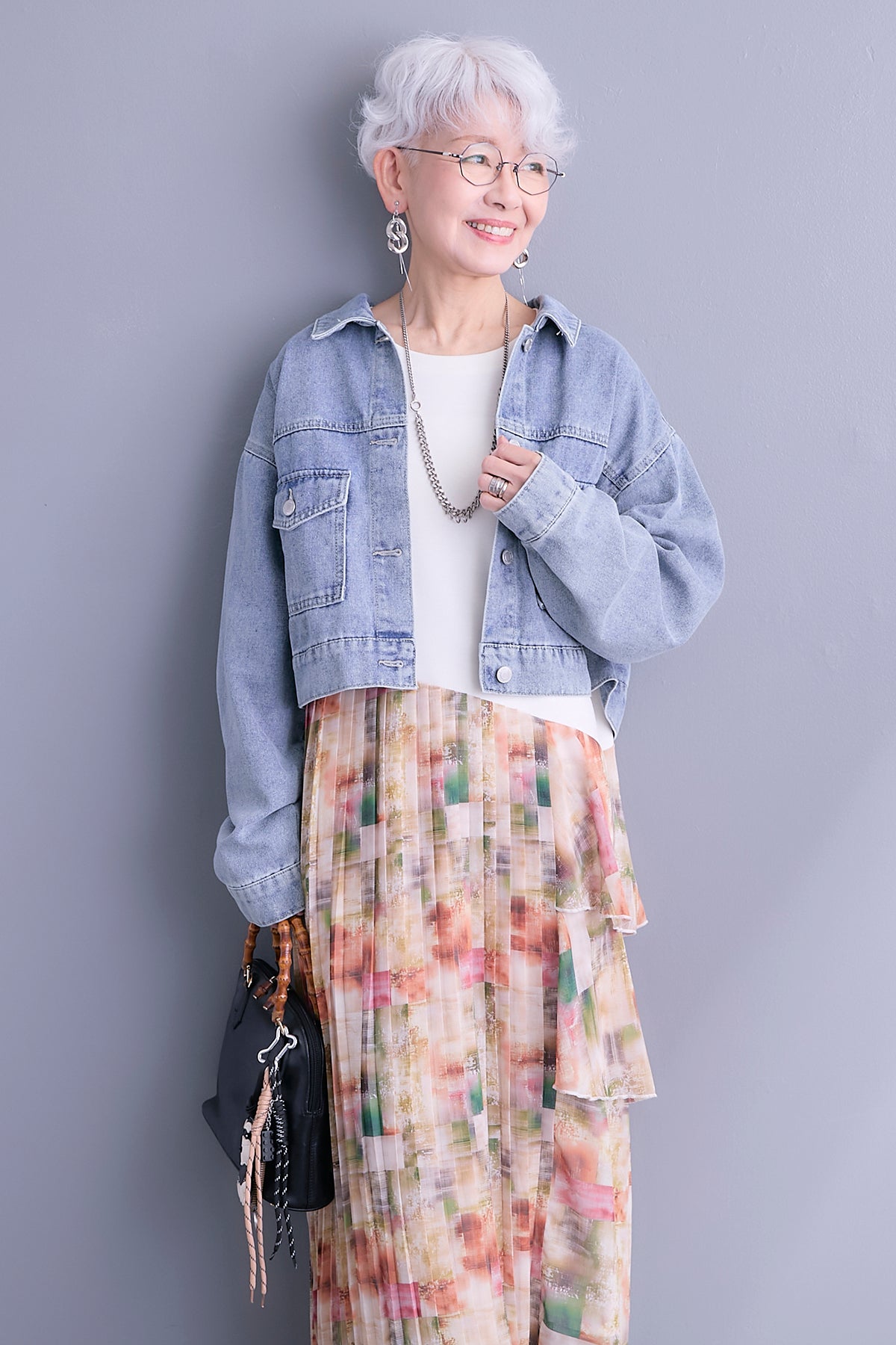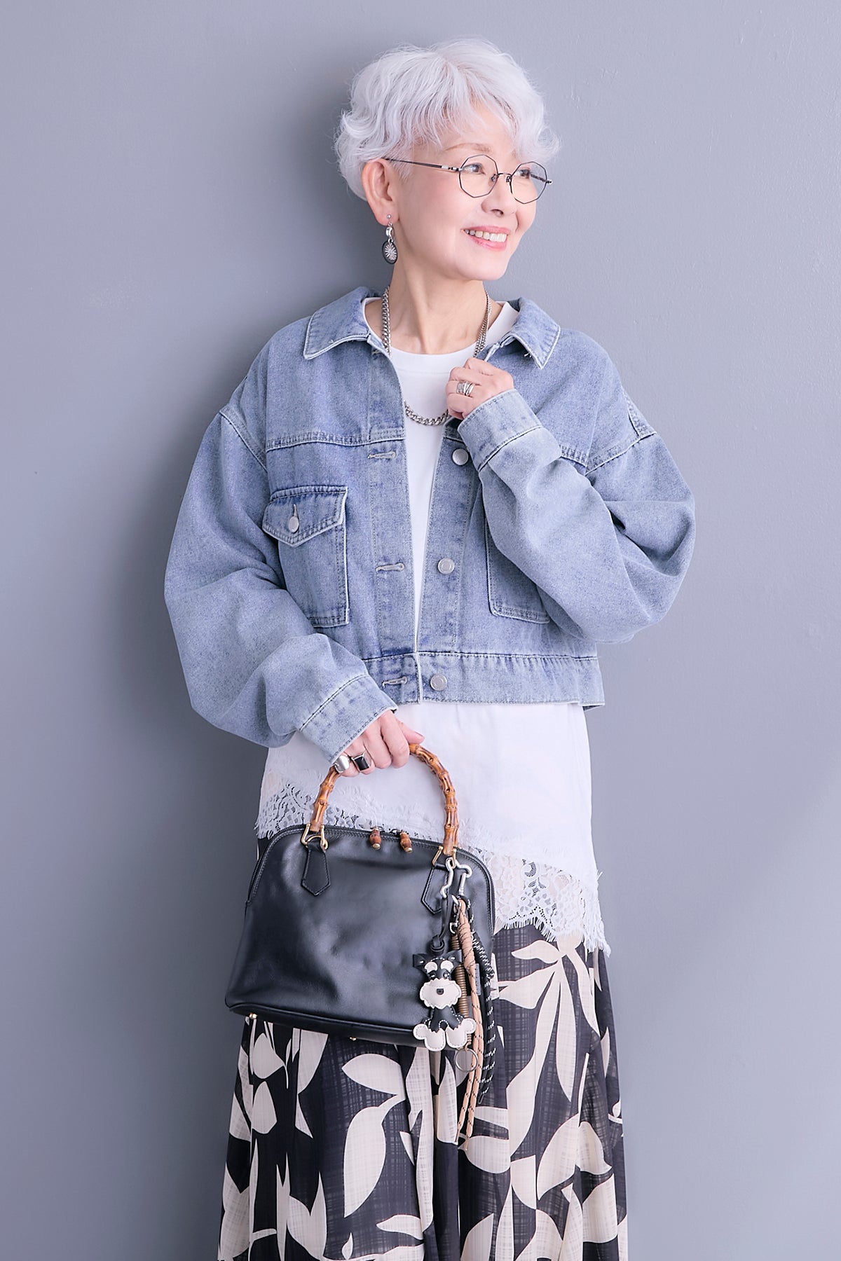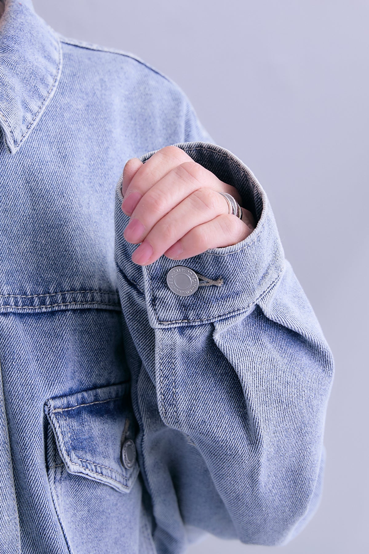 ライトオンスのデニムを採用した、軽やかな着心地のショート丈ジャケット。程よくゆとりのあるシルエットとコンパクトな着丈がバランスよく、レイヤードもしやすい一枚です。シャツやワンピースの上から羽織るだけで、ほどよい抜け感と立体感をプラス。季節の変わり目にも取り入れやすく、日常使いから外出まで幅広く活躍します。